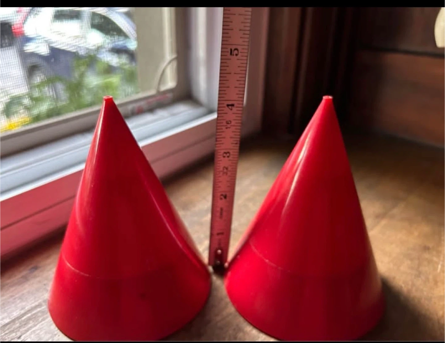 Egg cups with cone pyramid shaped salt shakers on top of each one!