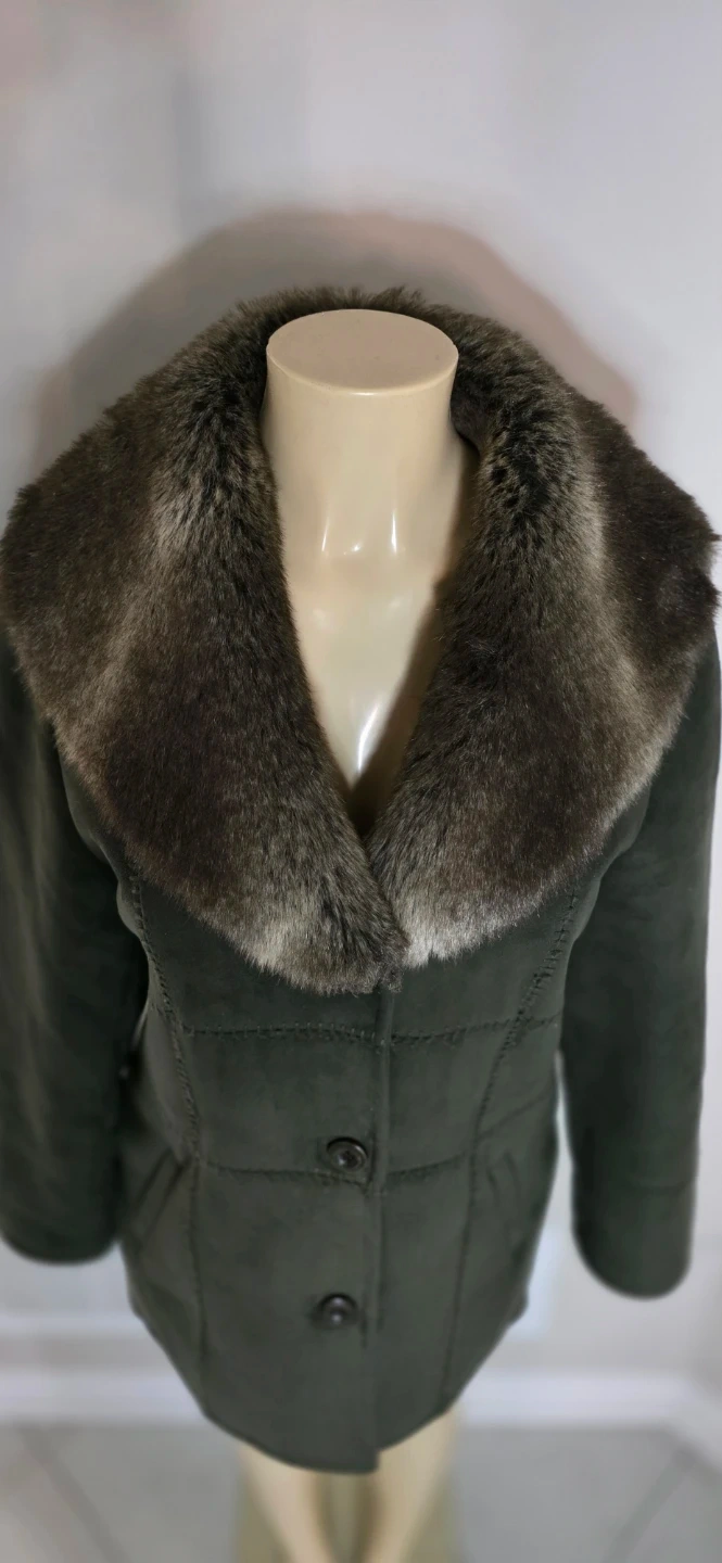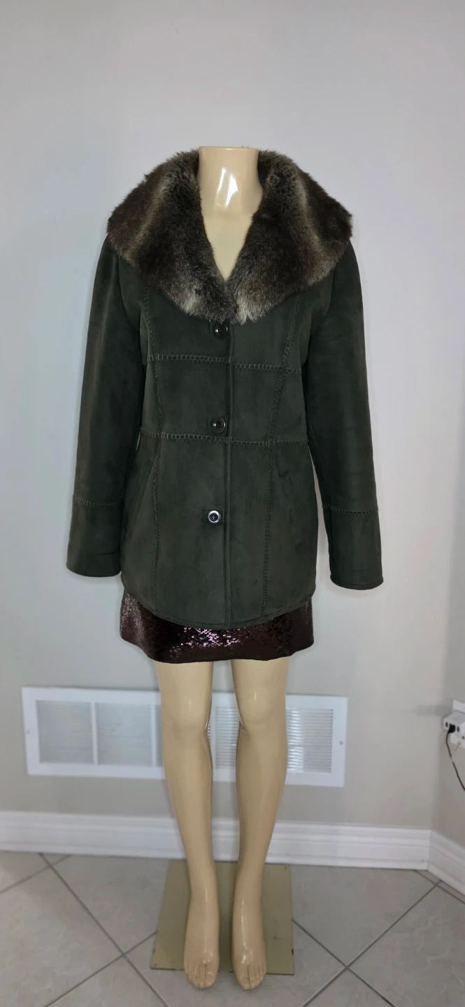 Selling a cozy shearling coat with a fur collar! It's a stylish and warm piece, perfect for the colder weather. The coat is in great condition and ready for a new owner.