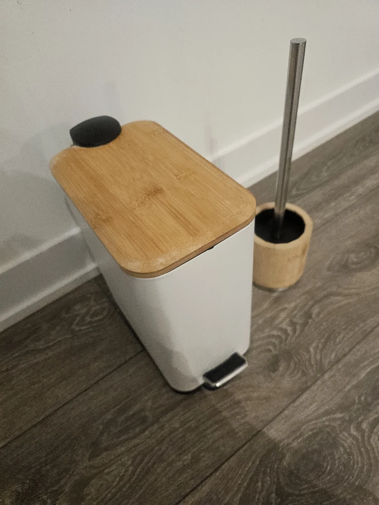 White Step Bin with Bamboo Lid & Toilet Brush Set
