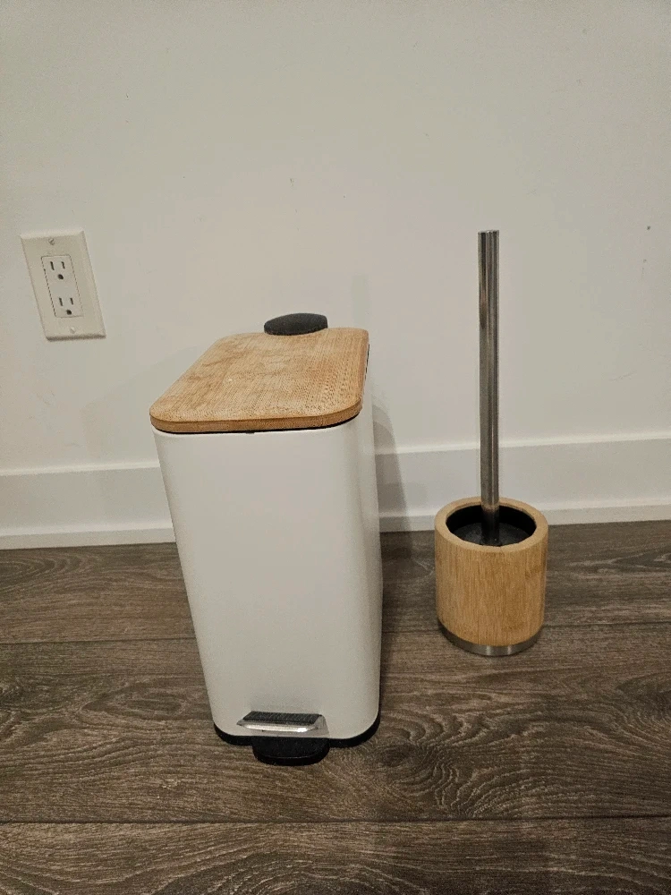 Selling a step bin with a bamboo lid, perfect for any room!