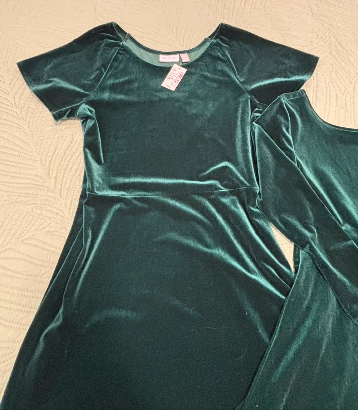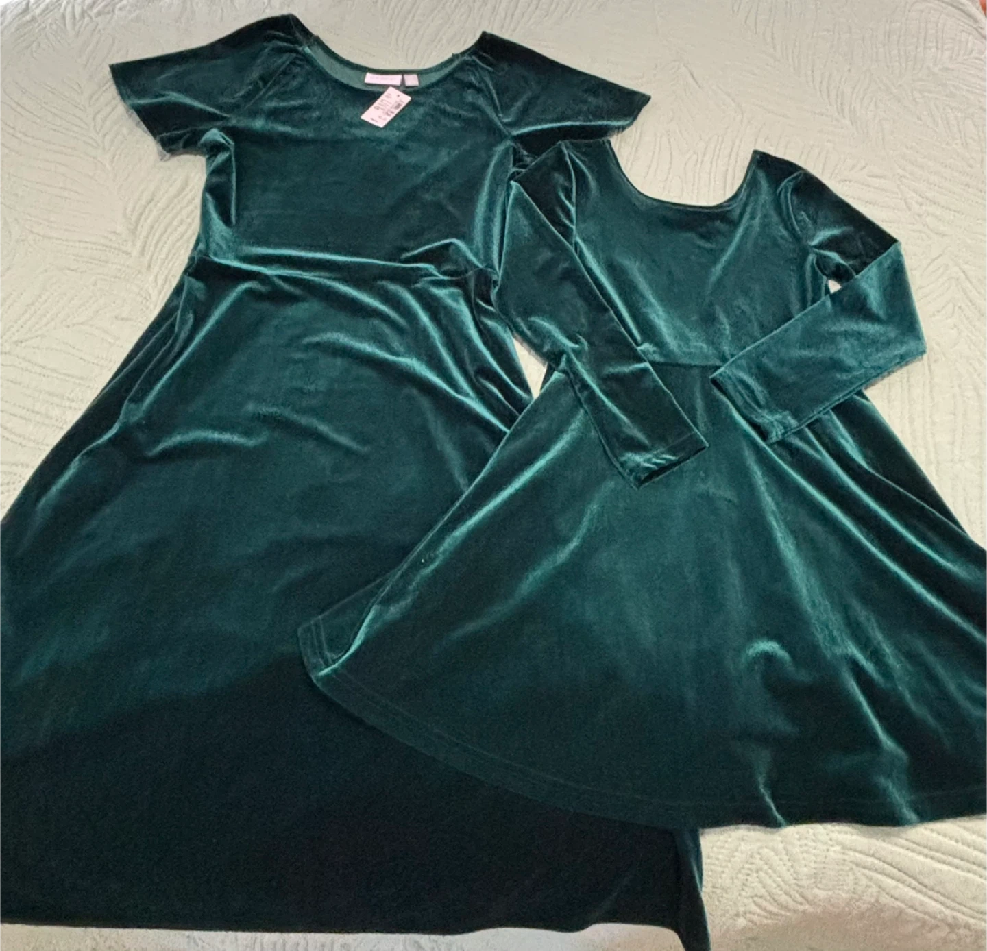 Here are beautiful velvet green mother-daughter dresses set from The Children's Place!