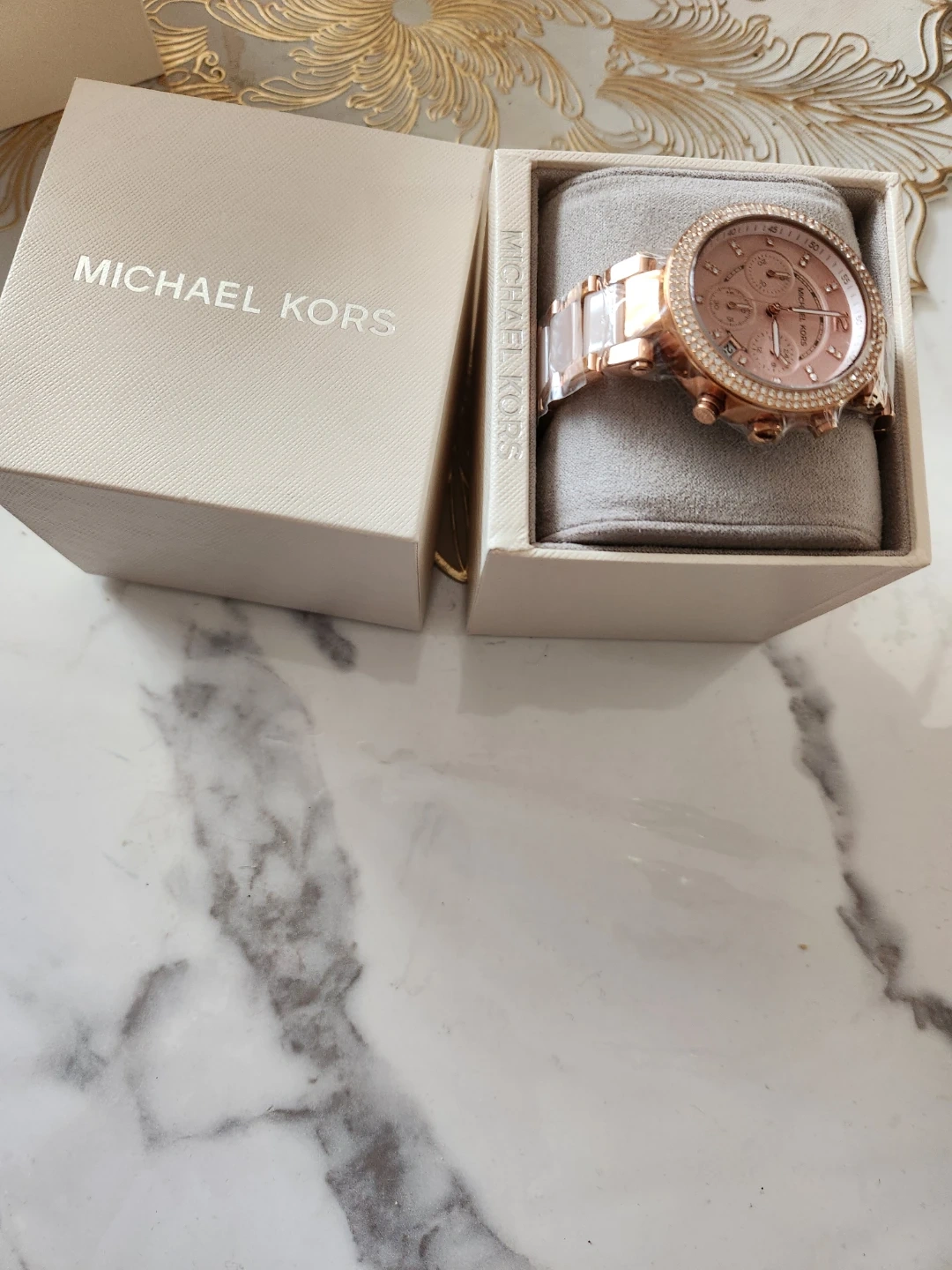 Selling a beautiful Michael Kors watch in rose gold! It comes with its original box and is in great condition. This stylish timepiece is perfect for adding a touch of elegance to any outfit