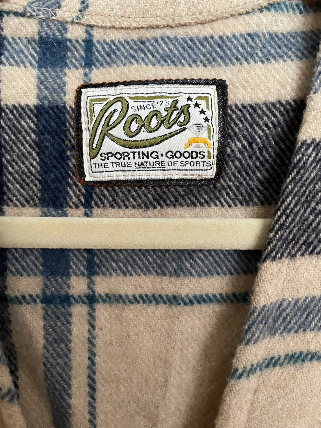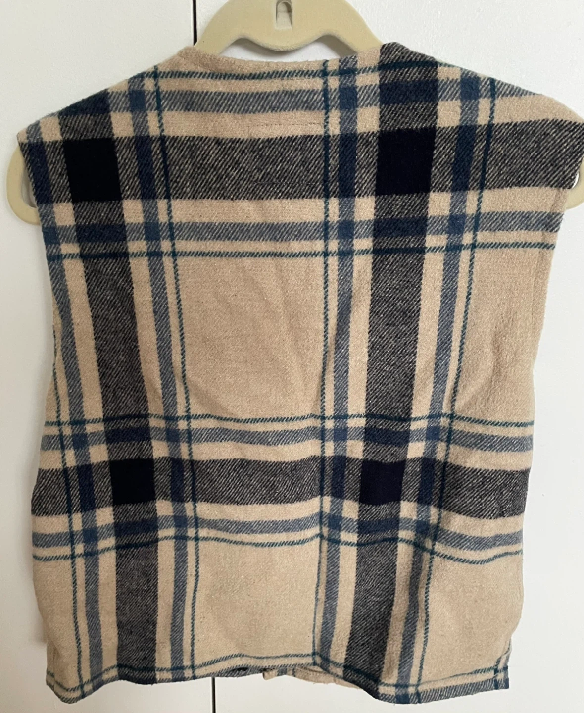 Amazing, rare Vintage Roots Women’s Plaid Wool Vest. Cream And Blue With Great Buttons. Size: M. Just Dry Cleaned.
