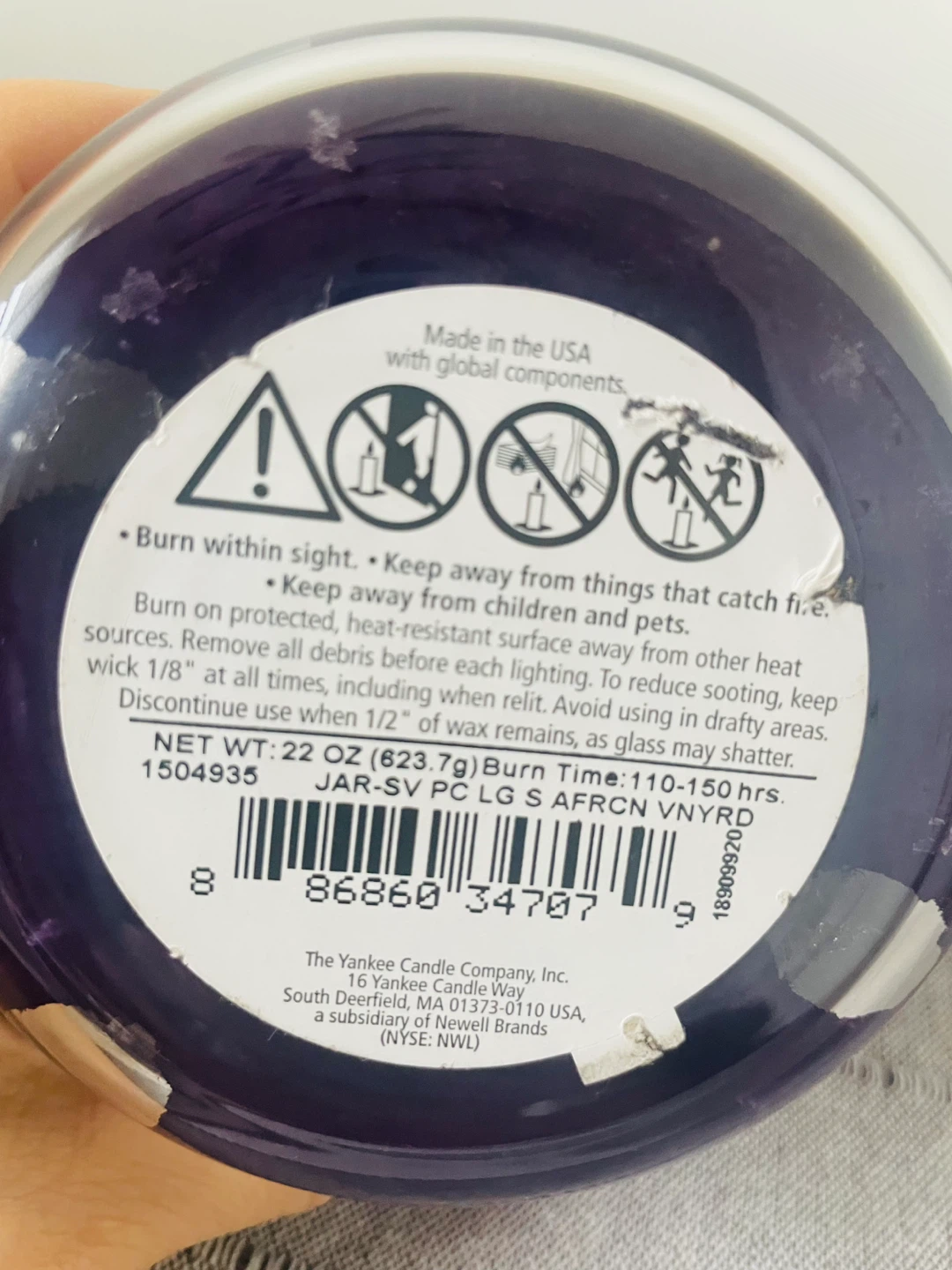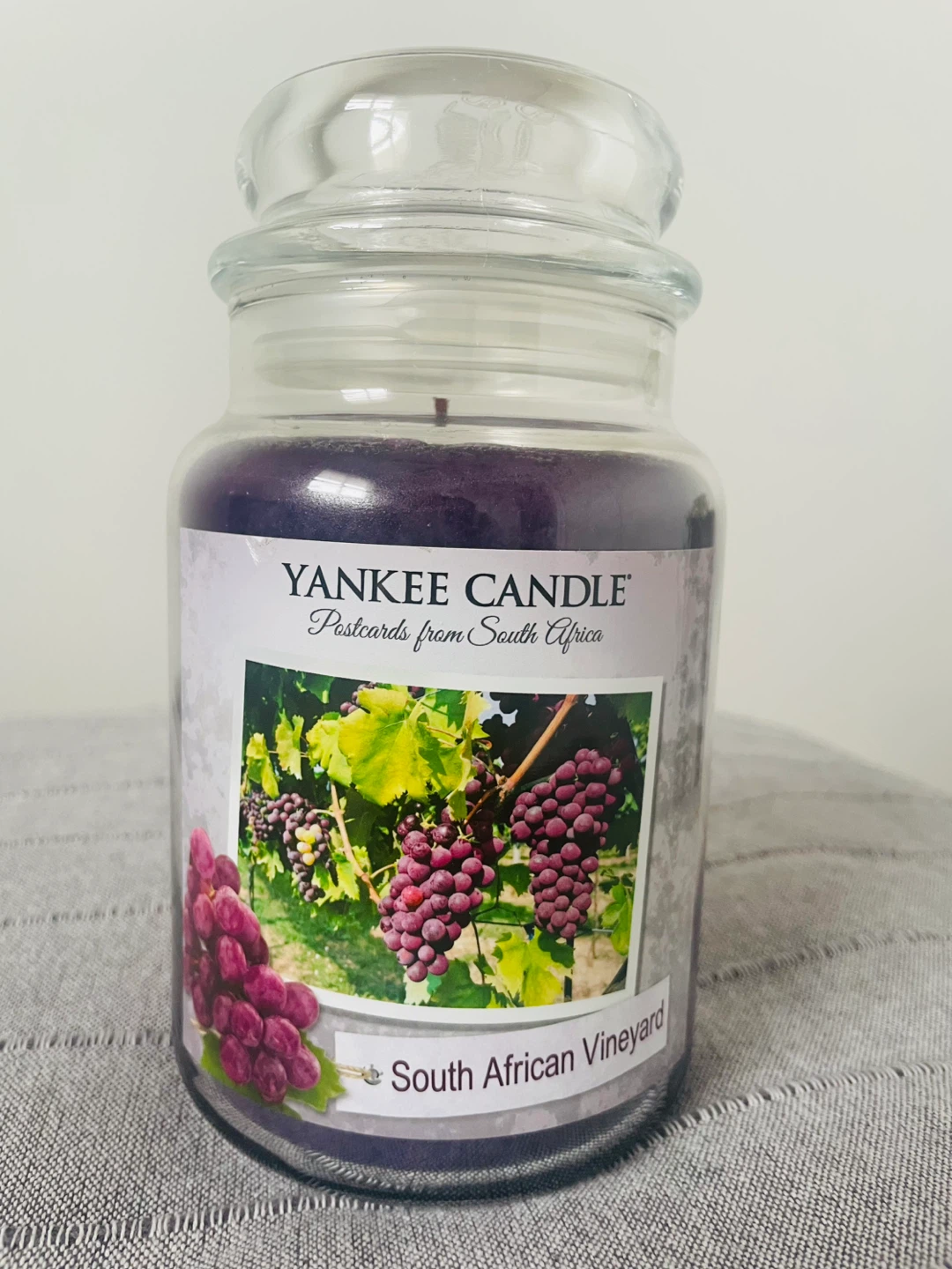 Selling a Yankee Candle from the Postcards from South Africa collection. The scent is South African Vineyard. Net weight is 22 oz (623.7g) with a burn time of 110-150 hours.