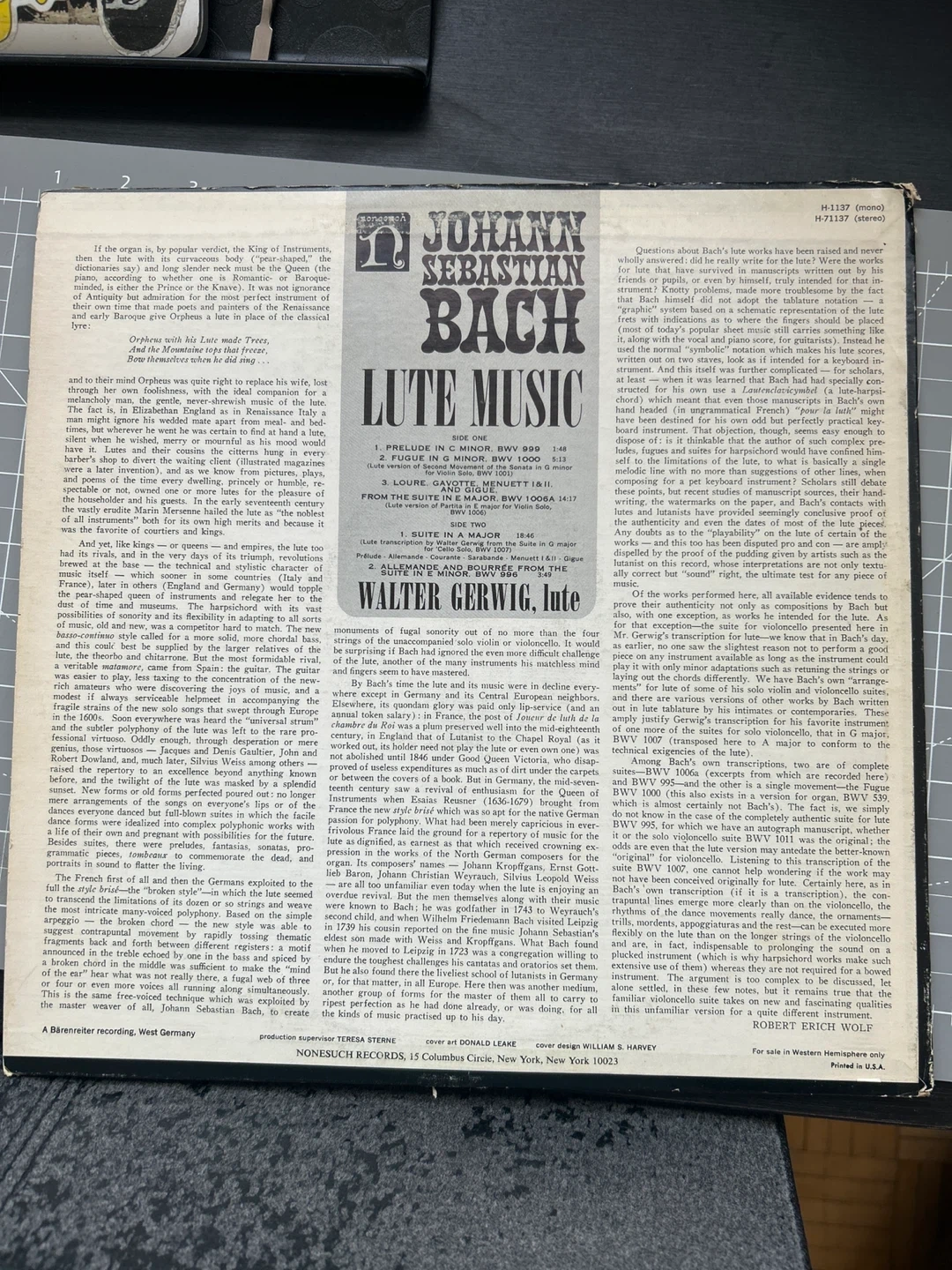 Selling a Johann Sebastian Bach Lute Music vinyl record. This record features Walter Gerwig playing the lute. It's a great addition for any classical music lover!