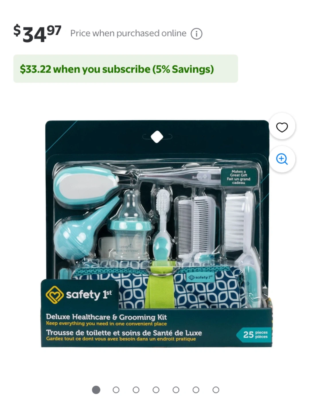 Keep your little one healthy and well-groomed with this Safety 1st Deluxe Healthcare & Grooming Kit! It's a 25-piece set that has everything you need in one convenient place. Originally bought for $34.97.
