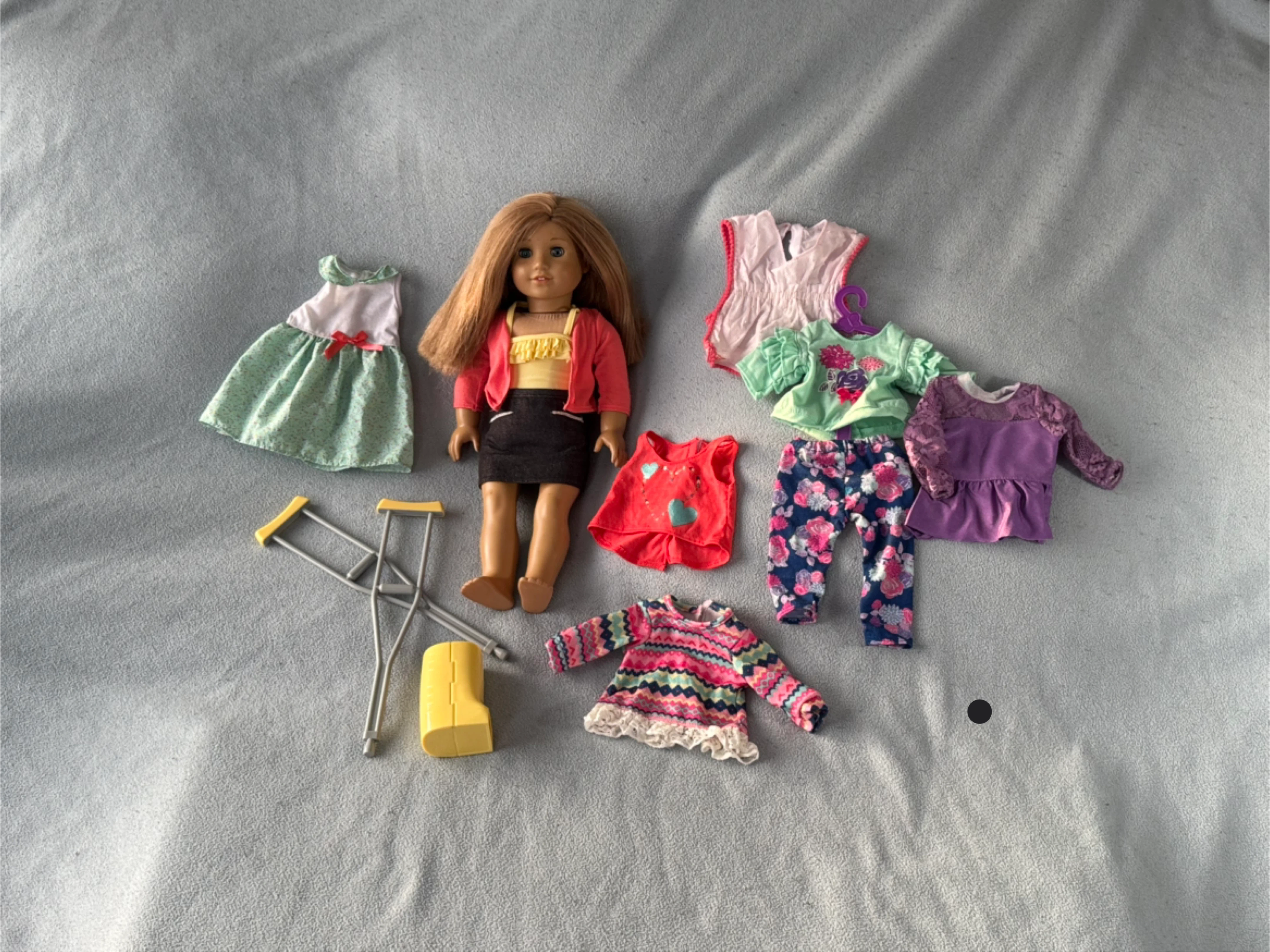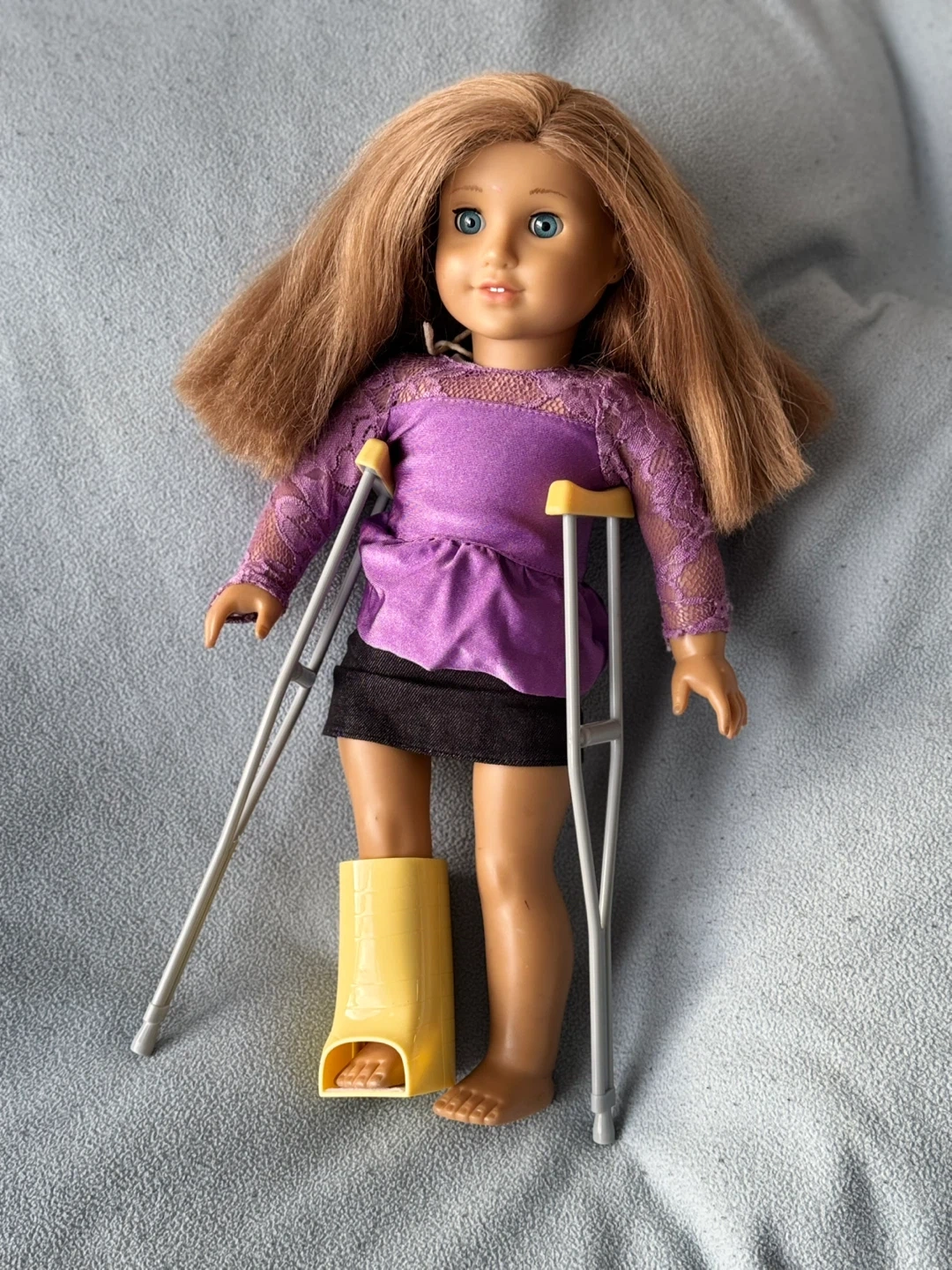 Fashionista Felicia is the most stylish girl in town! She doesn’t let an injury hold her back from trying new styles. She even coordinated her yellow cast and crutches with her shirt! Open to offers.