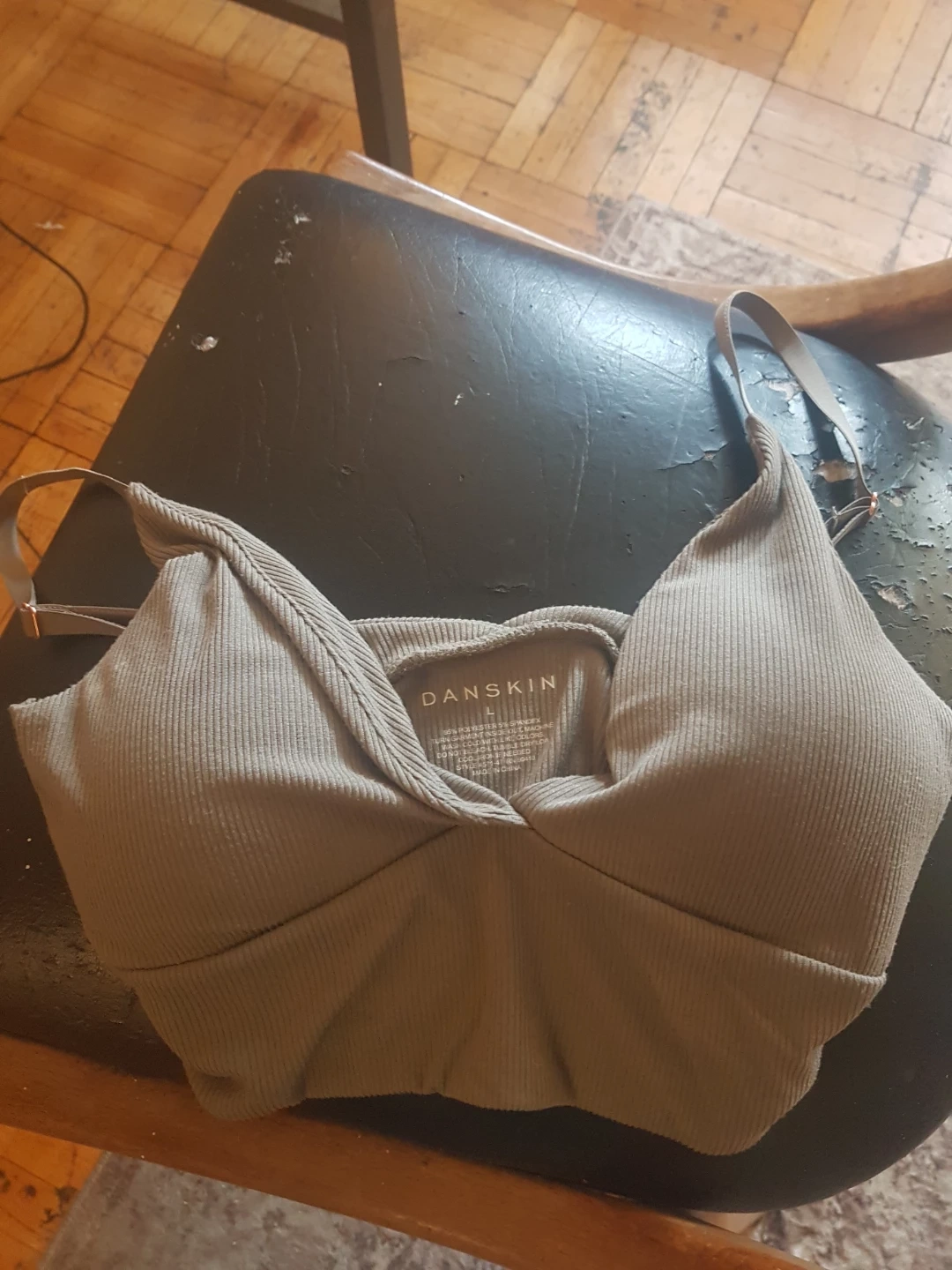 Selling a Danskin ribbed bra top in size large. It's made of 95% polyester and 5% spandex. It's in great condition and ready for a new owner! Never worn