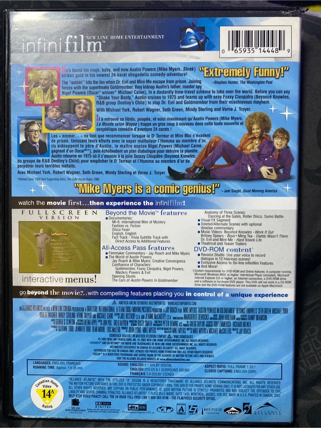 Selling the DVD of Austin Powers in Goldmember! It's the full screen version and includes the movie and beyond the movie features. A hilarious classic!