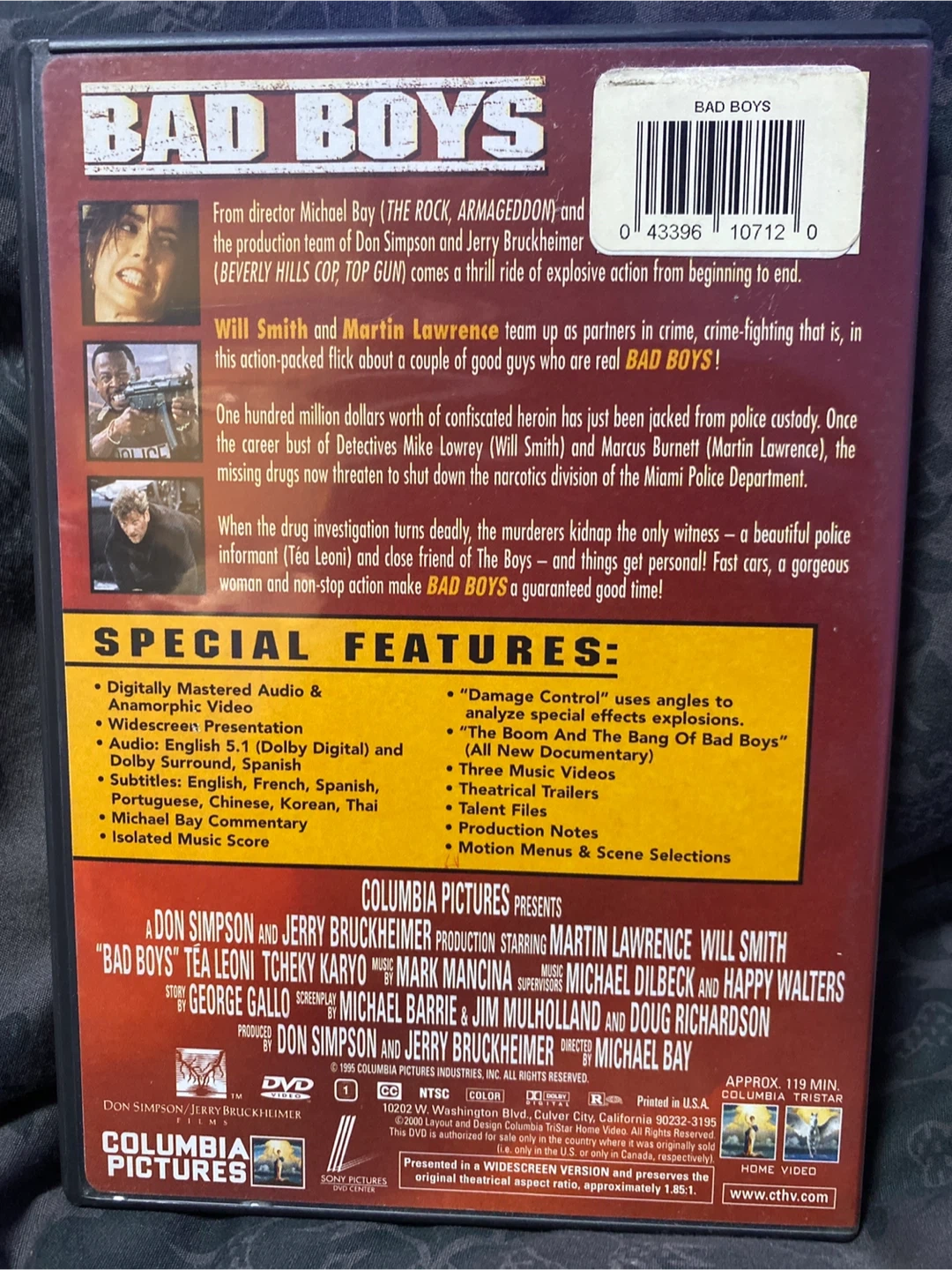 Selling a Special Edition DVD of the movie Bad Boys, starring Martin Lawrence and Will Smith! This action-packed film from director Michael Bay is a thrill ride from beginning to end. It includes special features such as digitally mastered audio, widescreen presentation, subtitles in multiple languages, and more!