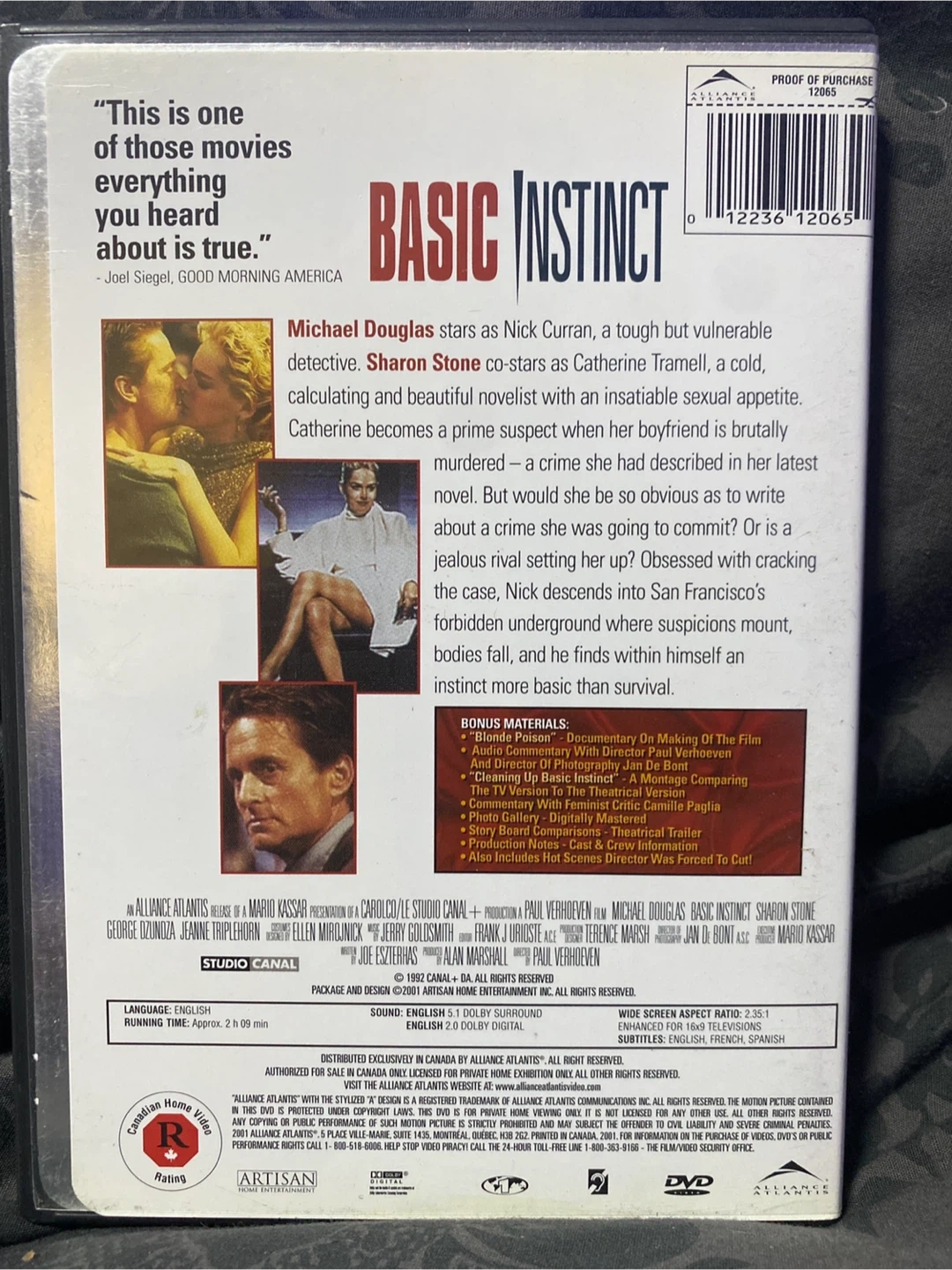 Selling a Special Edition DVD of Basic Instinct, starring Michael Douglas and Sharon Stone. This DVD includes bonus materials such as a documentary on the making of the film, audio commentary with director Paul Verhoeven, and more!h