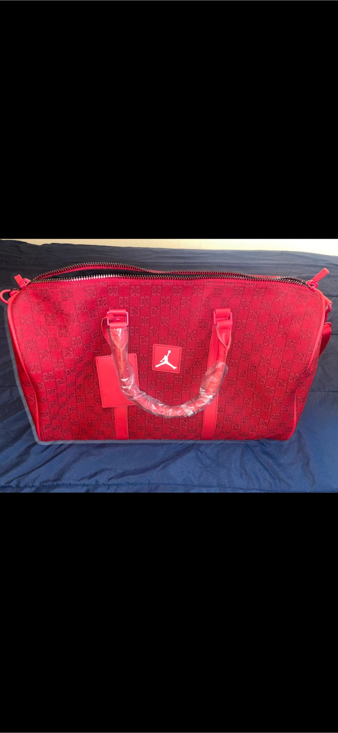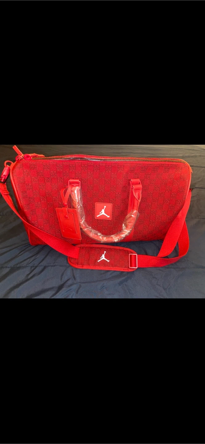 Selling a red Jordan duffle bag! It's brand new with the packaging on it and perfect for the gym or travel.