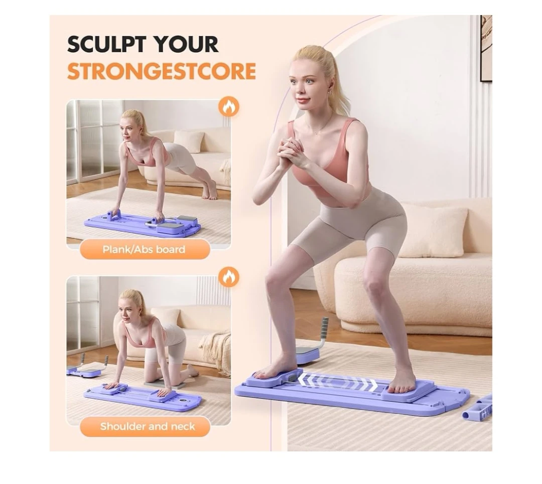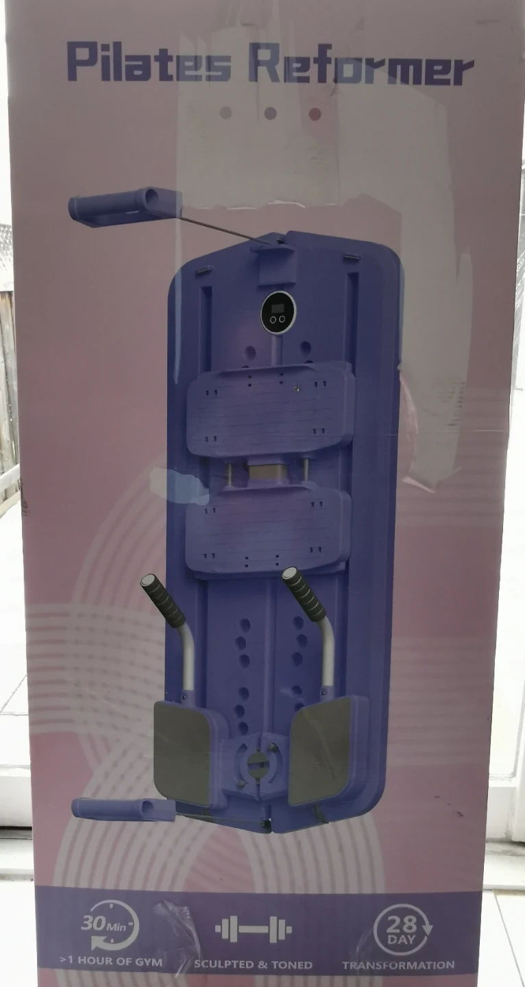 Get ready to sculpt and tone with this Mosdos Pilates Reformer! This fitness training equipment is designed for both men and women, promising a full body workout. This item is new open, and comes in the original packaging (distressed box).
