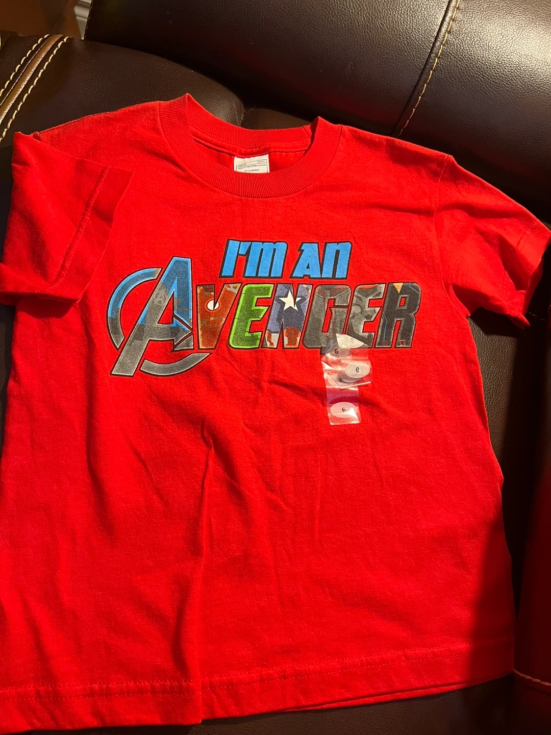 I'm selling a brand new Marvel Avengers T-shirt! It's a vibrant red colour and size 6. Perfect for any young Avengers fan!