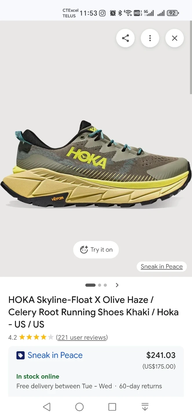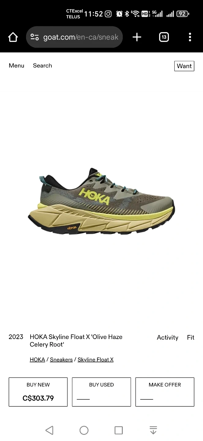 Selling a pair of Hoka Skyline-Float X running shoes in Olive Haze and Celery Root. The size is US 10D. They feature a Vibram sole for great traction! Originally bought for $241.03
