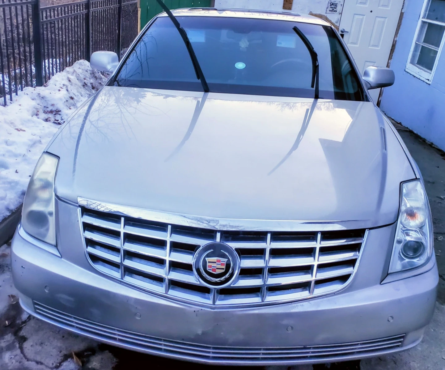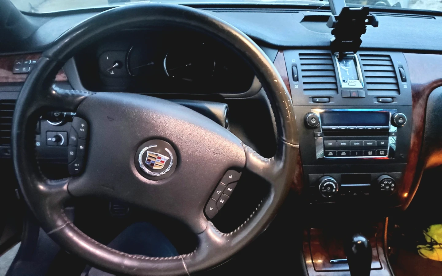 Selling a silver Cadillac DTS sedan. It has black interior with wood trim. The car is used condition. Pwr locks doors seats and windows, ctuise control has 250000 kms