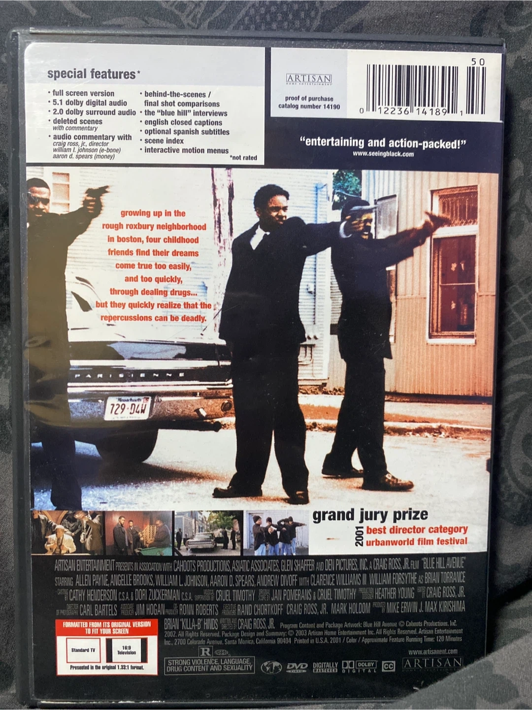 Selling a used DVD of Blue Hill Avenue. It's a full screen version with 5.1 Dolby Surround audio and deleted scenes. It also includes audio commentary with writer/director Aaron D. Speiser (alone). Special features include behind-the-scenes, find the common ground, and Blue Hill interviews. Enjoy!