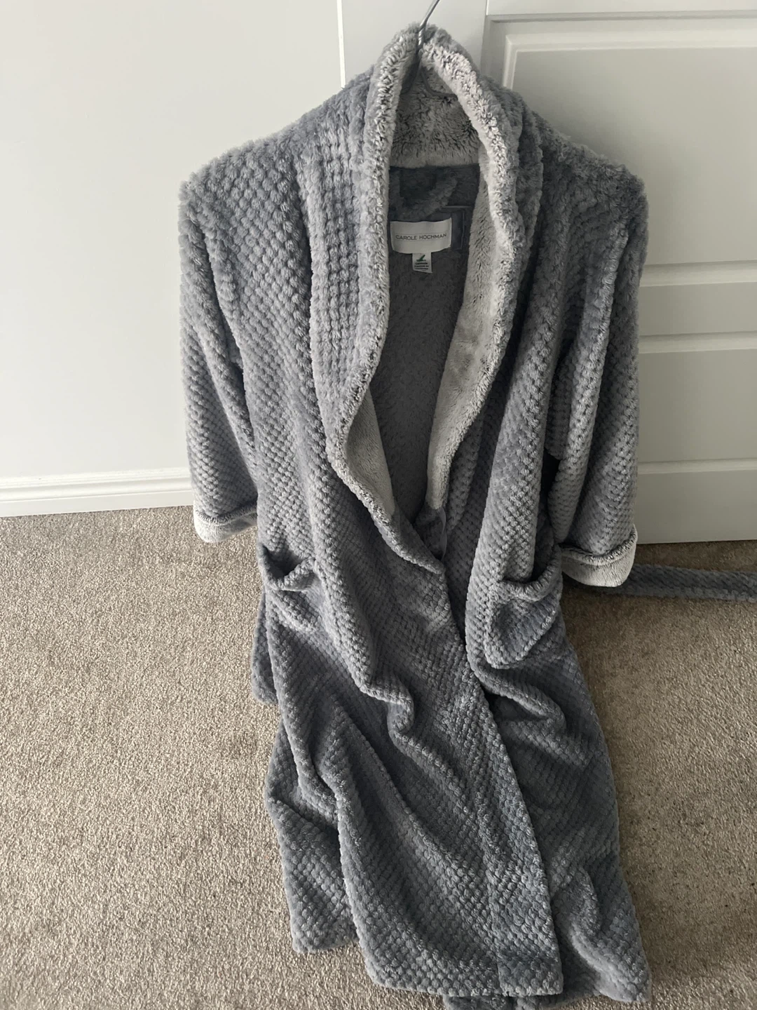 Cozy up with this Carole Hochman plush robe! It's a lovely grey colour and features a soft, comfortable material, perfect for lounging around the house pet and smoke free home 🏠