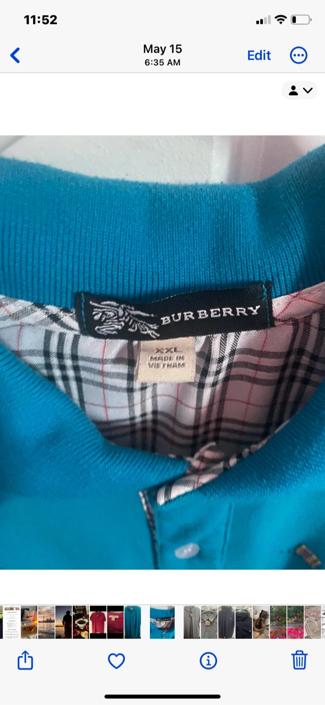 Buy & SellBurberry Polo Shirt - XXL - TealBurberry Polo Shirt - XXL - Teal$35This is a Burberry polo shirt in size XXL. The colour is teal and it's in great condition!ConditionGoodBrandBurberryWHERE TO MEETHigh ParkView MapSELLERRene21High Park N20320 reviews0 chats·0 favorites·13 viewsSEND CHAT TO SELLERHi Rene21! I’m interested in your listing.Hi Rene21! I’m interested in your listing.Get the Karrot app to chatSign In to chat