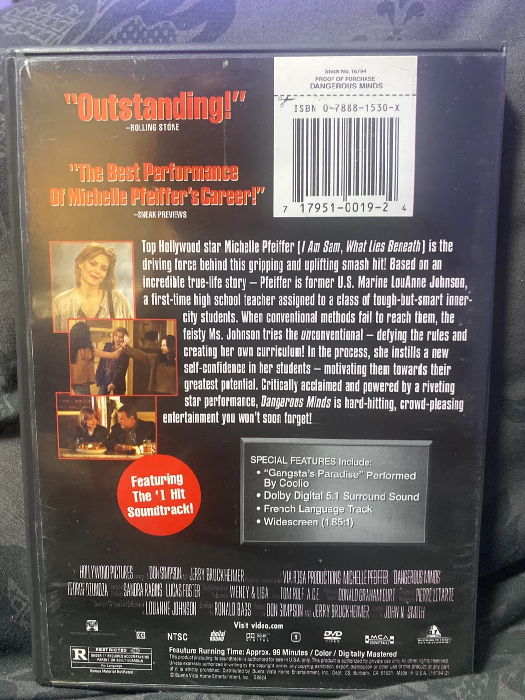 Selling a DVD of the movie Dangerous Minds, starring Michelle Pfeiffer! It's a top Hollywood story about a teacher in a tough inner-city school. It also features the hit soundtrack single "Gangsta's Paradise" by Coolio