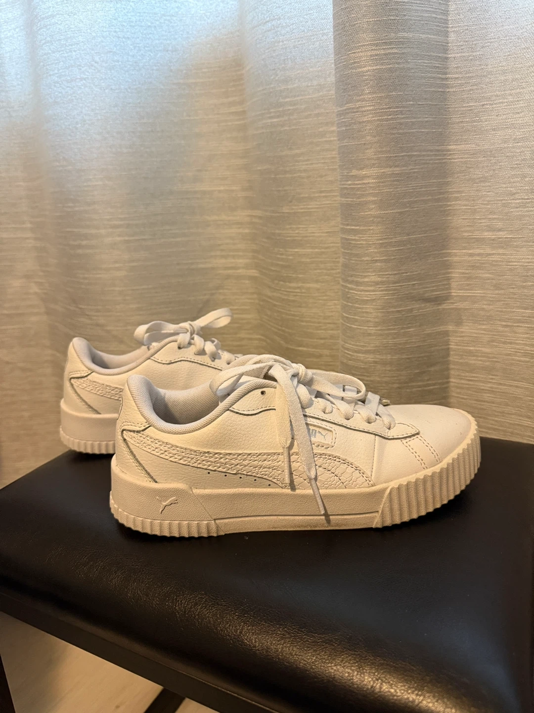 Selling a pair of Puma Carina sneakers in white leather! They are in great condition and are a US women's size 6