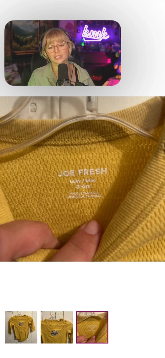 Joe fresh brand. Long sleeve waffle knit onesie. Yellow with racoon graphic. Size 3/6m. Brand new condition