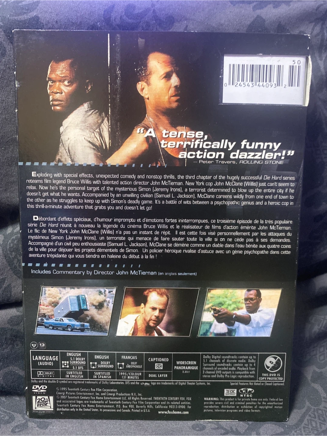 Selling a DVD copy of Die Hard: With a Vengeance starring Bruce Willis, Jeremy Irons and Samuel L. Jackson.