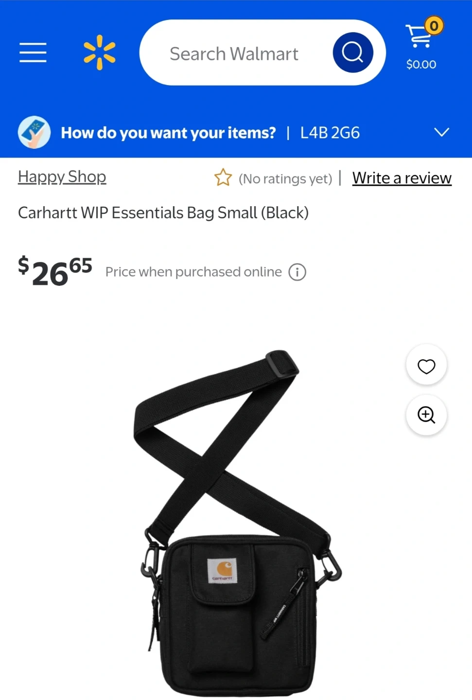 Selling a Carhartt WIP Essentials Bag in black. It's a small, convenient bag for carrying your essentials. Originally bought for $26.65 + HST Perfect for everyday use!