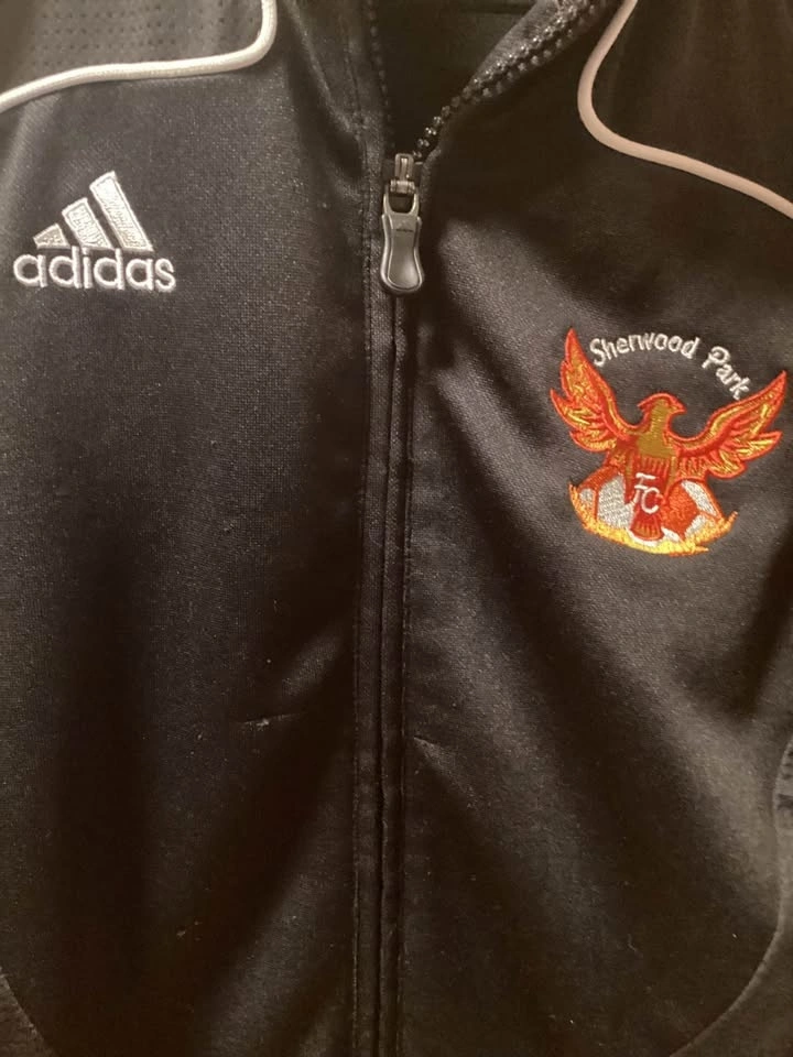 Sherwood Park soccer jacket with Phoenix FC logo. Still in good condition. Has a small mark on the front, as shown. Has been in storage. Boys size medium