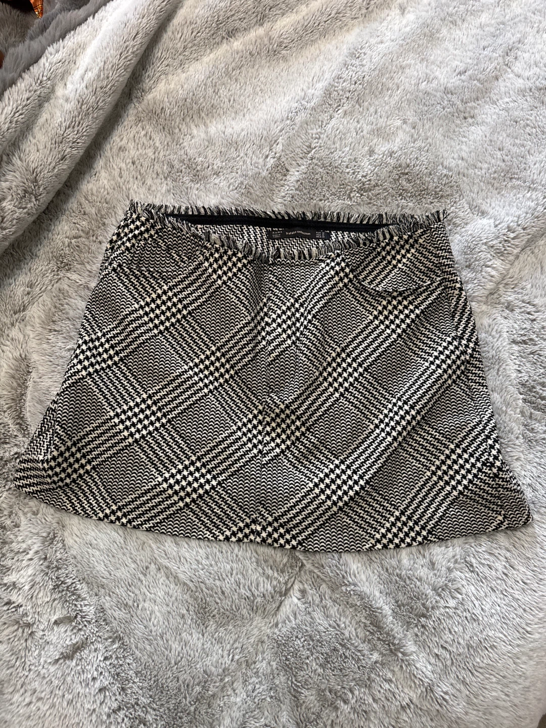 Selling a Zara Trafaluc Collection skirt in size M. It features a unique black and white patterned design. The skirt is in great condition and would be a stylish addition to your wardrobe!