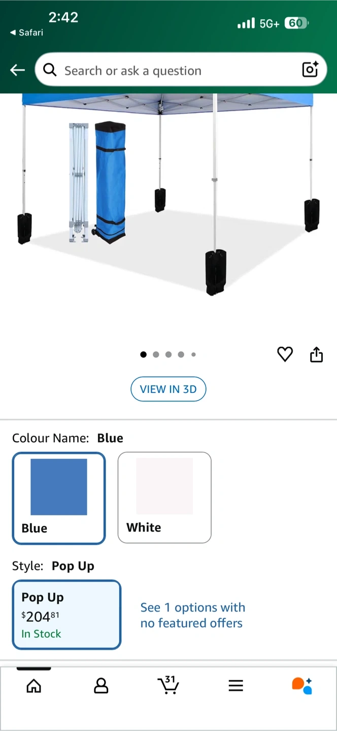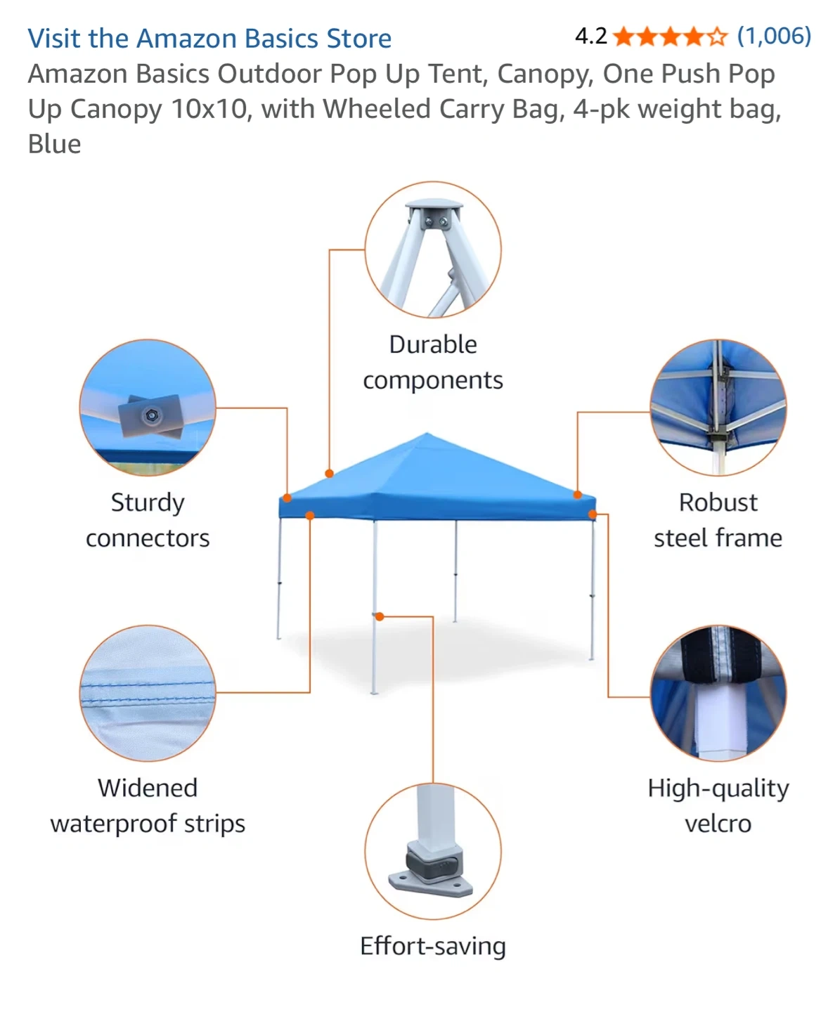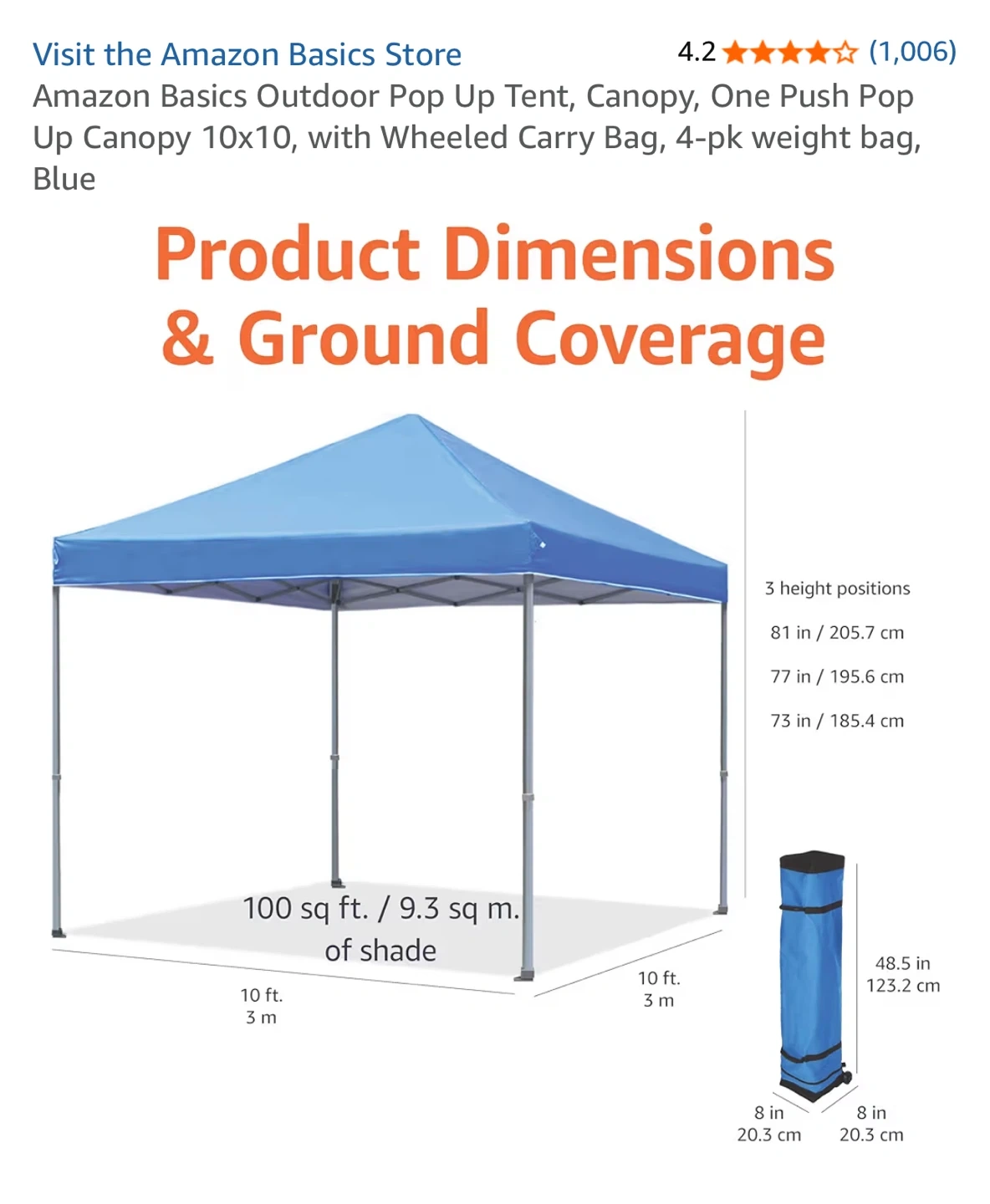 Selling a brand new Amazon Basics outdoor pop up canopy tent! It's blue, measures 10x10, and comes with a wheeled carry bag and 4-pk weight bag.