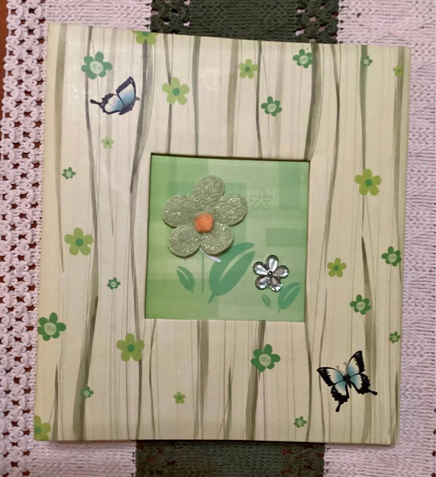 Really cute, and a great gift idea, too! It has a total of 25 pages, each page will hold 4 photos (two on front and two on back, as pictured). Inset flower design on the cover