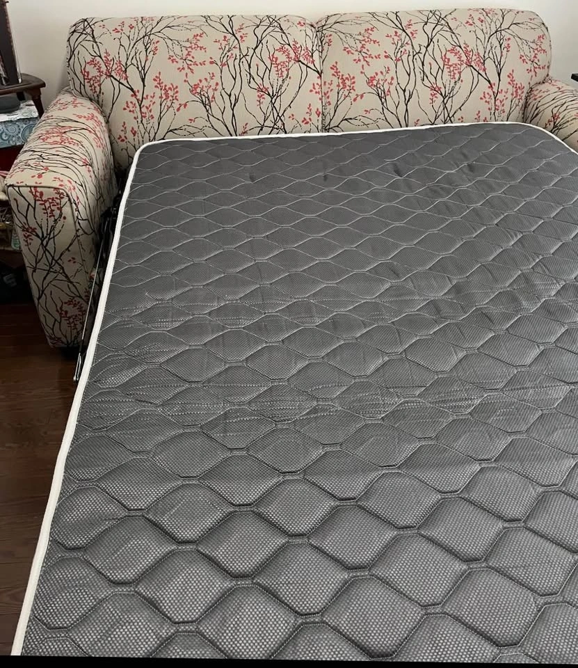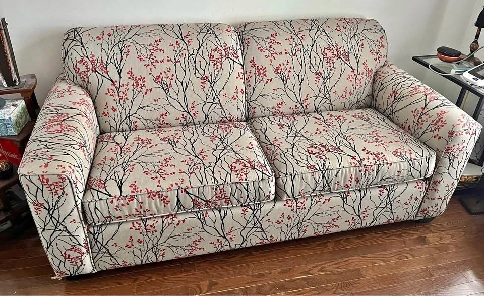 A beautiful folding sofa bed (with mattress) like new. Perfect choice for small rooms. Unfolds to a double bed or can be used as a comfortable couch. 76” L x 35” W x 34” H
