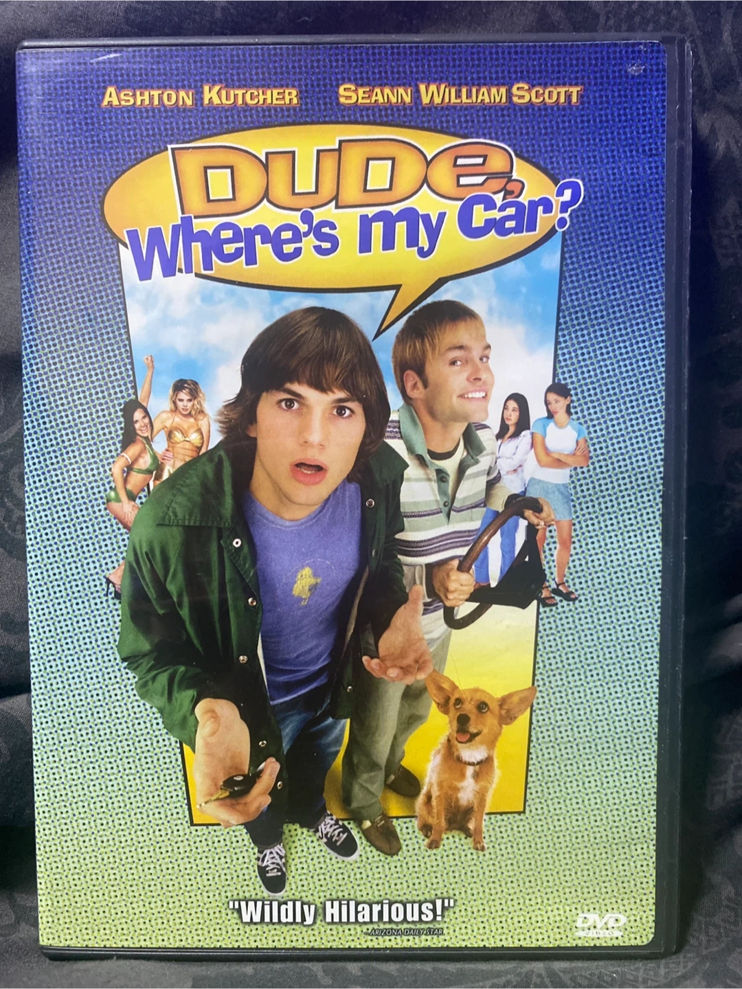 Selling a DVD of the movie "Dude, Where's My Car?" starring Ashton Kutcher and Seann William Scott. It's a hilarious comedy about two dudes who wake up after a wild night and can't remember where they parked their car. It's rated PG-13 and has a runtime of 83 minutes.
