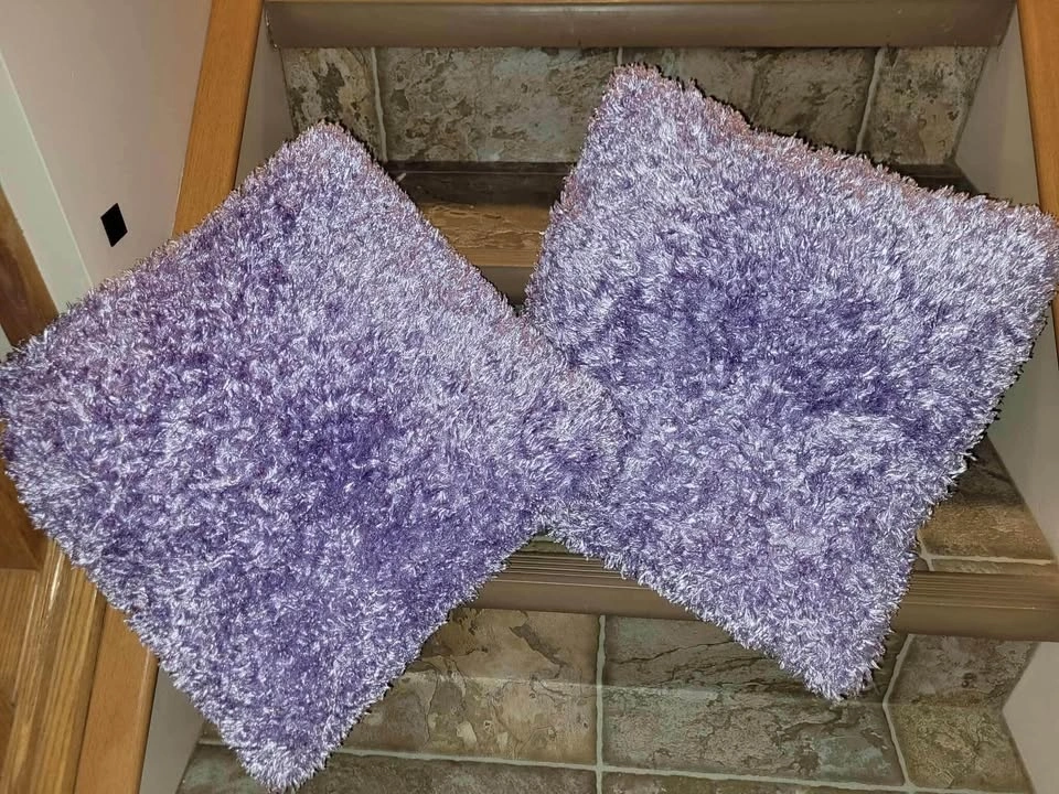 The light purple soft fuzzy pillows are 17” square. They are soft and cushy.