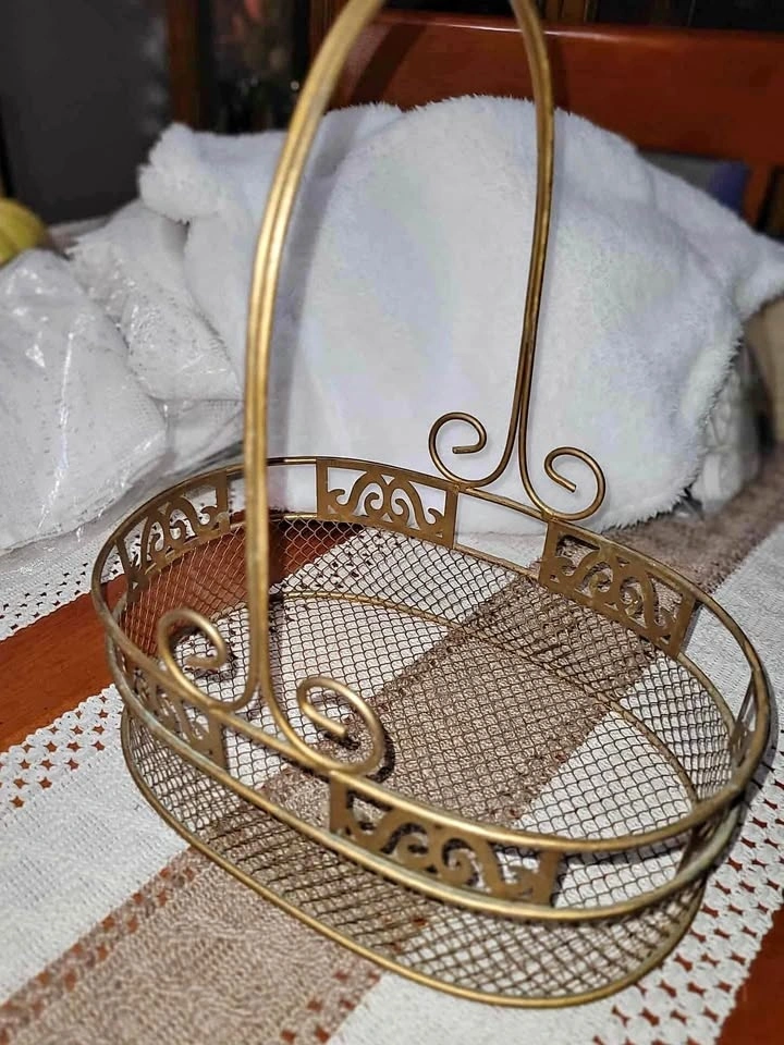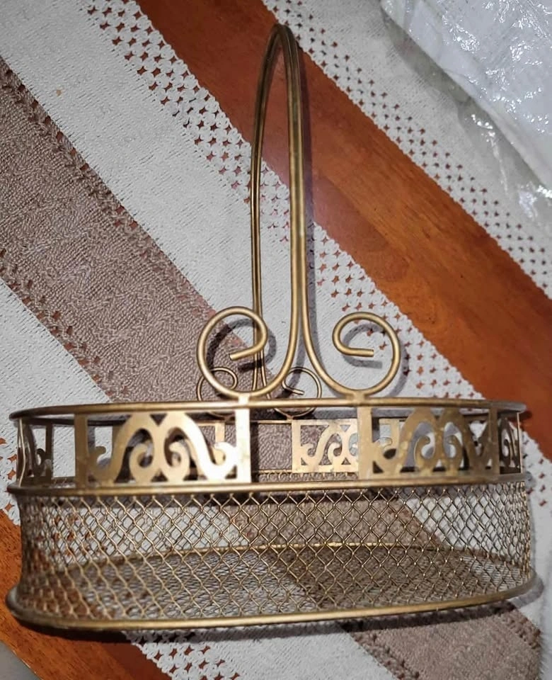Looks beautiful in the home! Can be used by the fireplace, in the living room, bathroom, kitchen, bedroom, to hold almost anything (towels, food, candy, chocolate, candles, fruit, flowers, toilet paper or cosmetics and many others). Measures 12” (30cm) tall to the top of the handle, and the oval basket is 10.5” (27cm) x 7” (18cm)