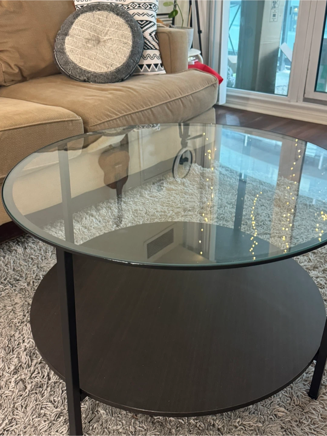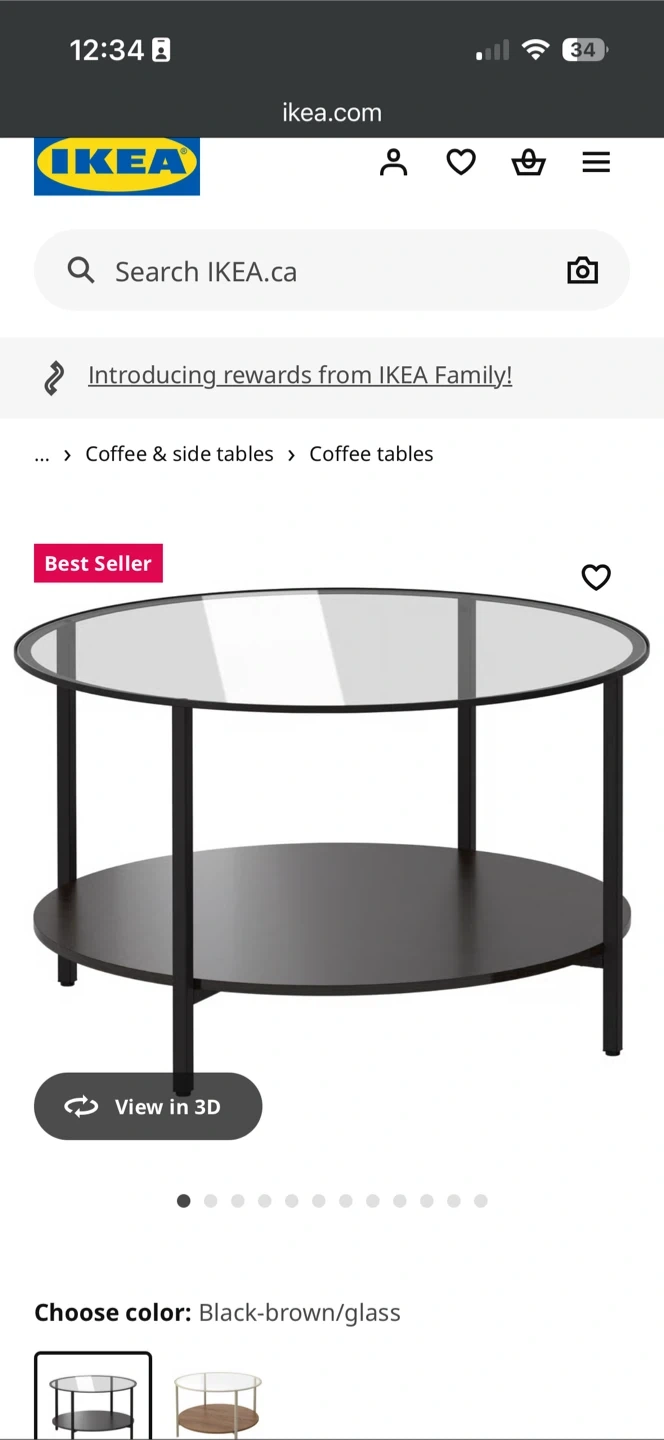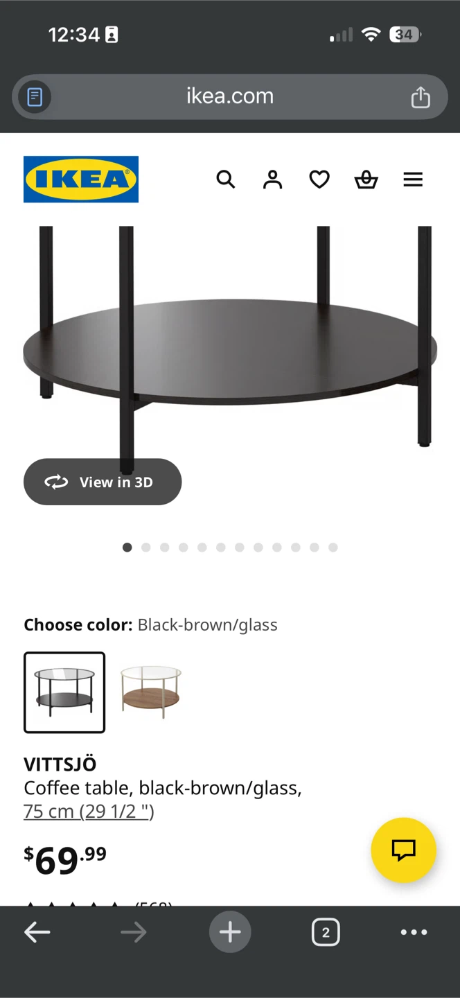 Selling an IKEA Vittsjö coffee table in black-brown and glass. It's in great shape and would look lovely in any living room! Dimensions are 75 cm (29 1/2 ").