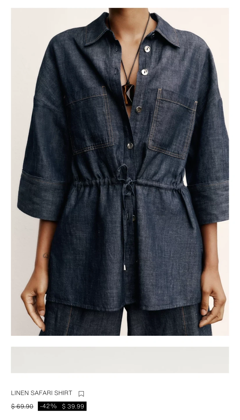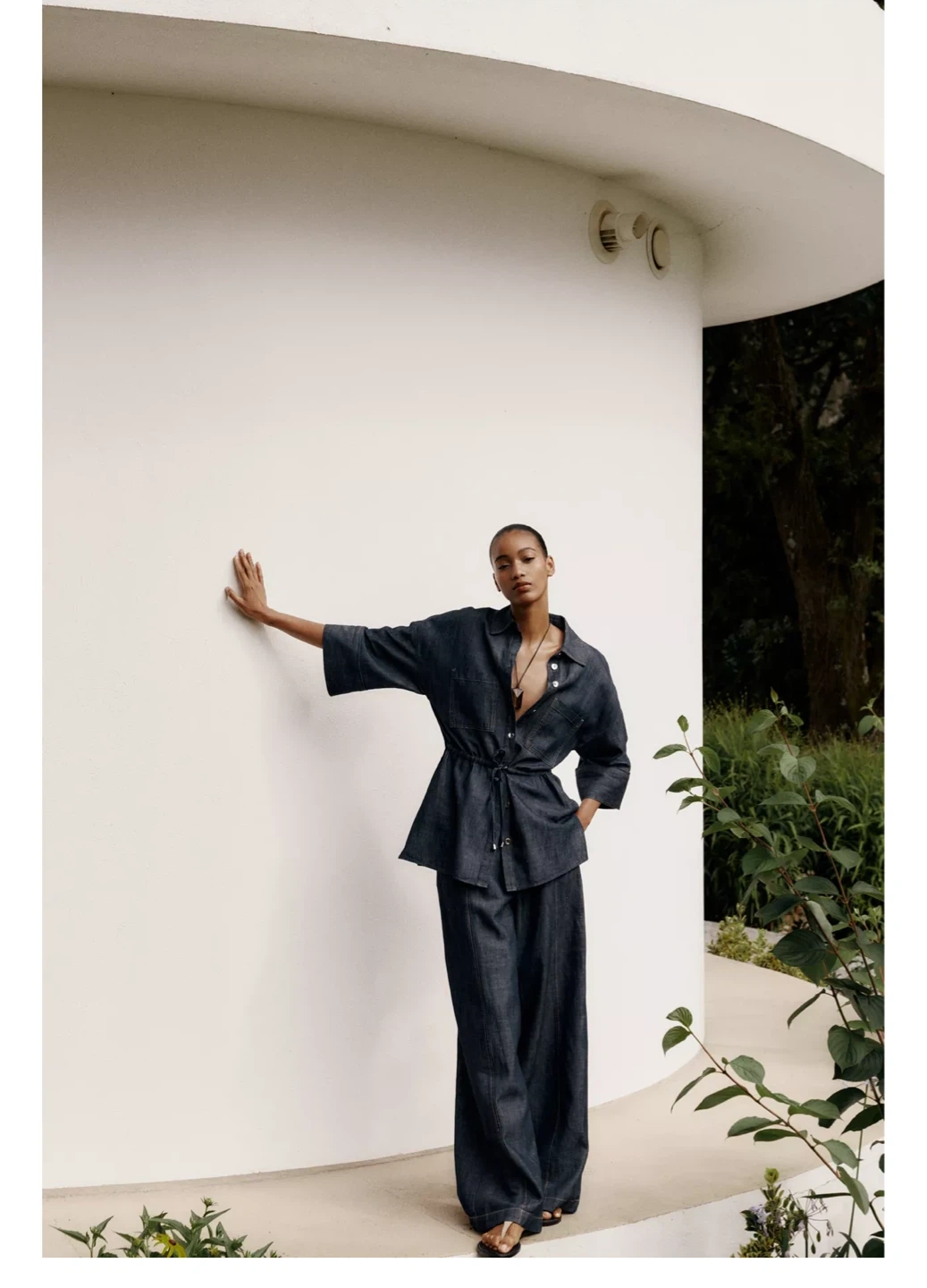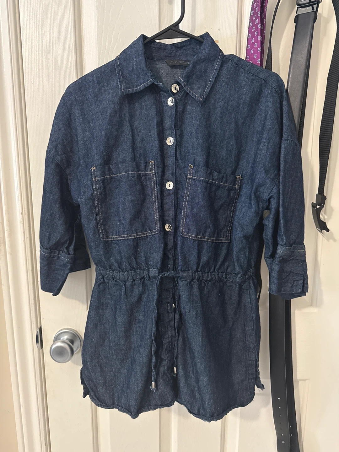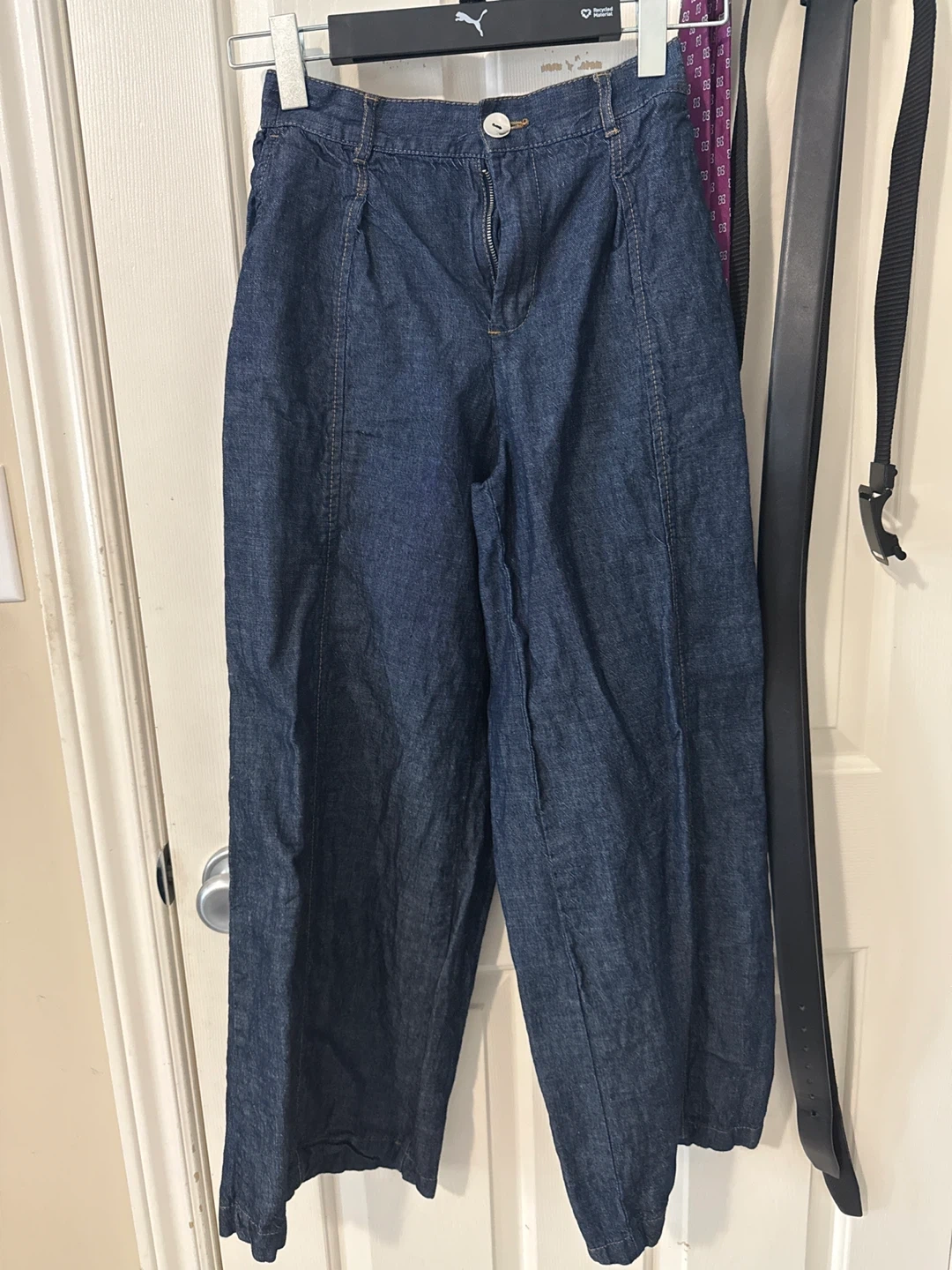 Selling a Zara linen set! It includes wide leg pants and a matching safari shirt. The set is a beautiful dark denim colour and made of comfortable linen material. The original price I bought for was $90. It runs larger than usual