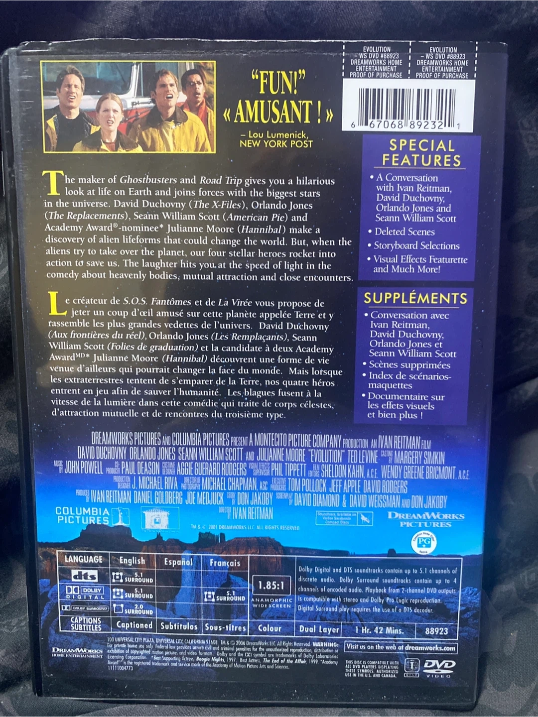 Selling the DVD of Evolution, a hilarious comedy about aliens! Enjoy this fun movie night classic!