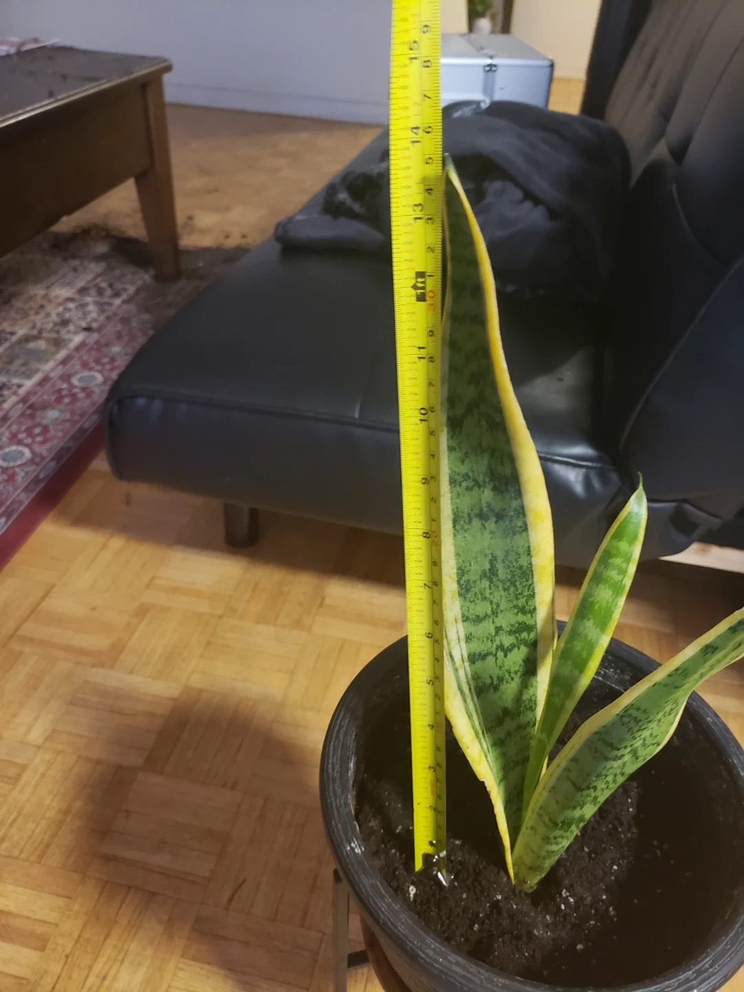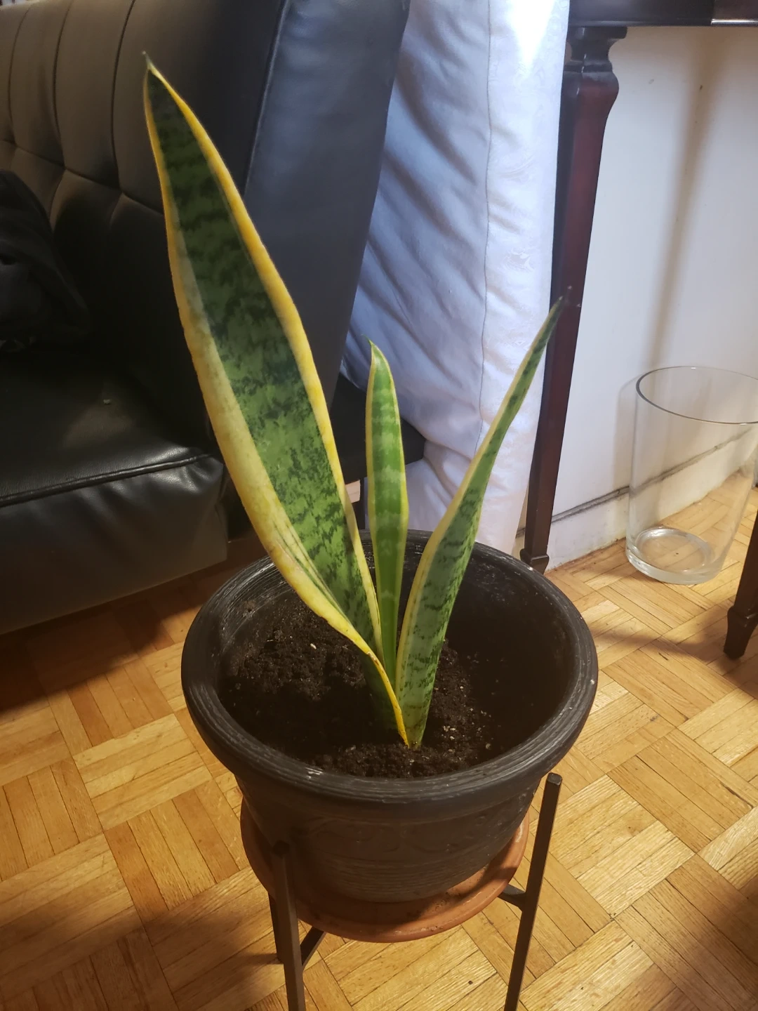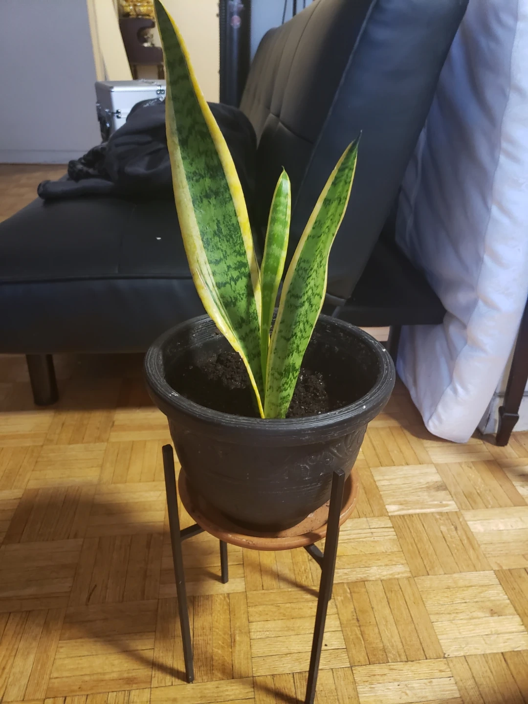 Selling a healthy snake plant in a black pot with a stand. The plant stands approximately 15 inches tall. It's a great addition to any home and easy to care for!