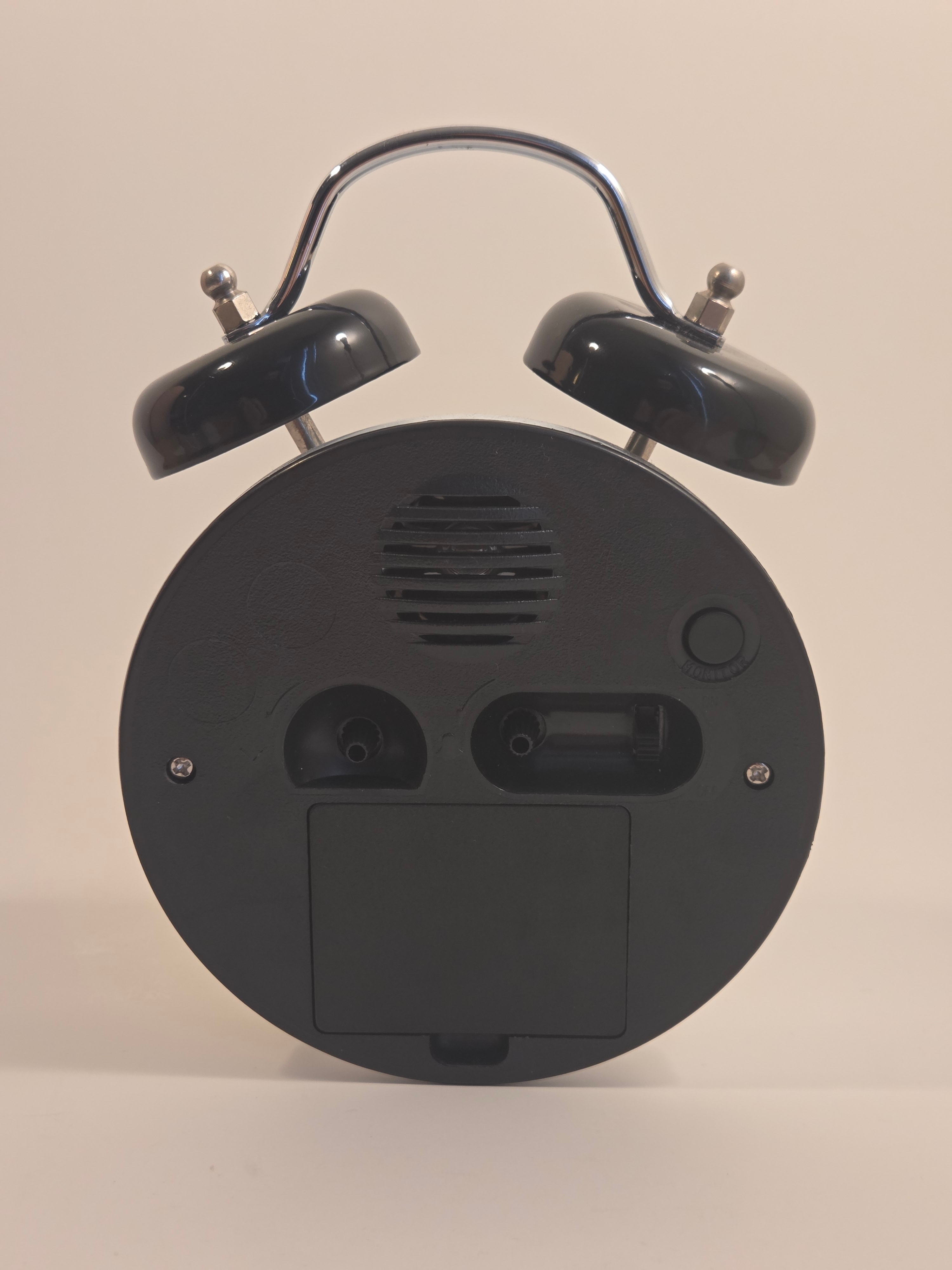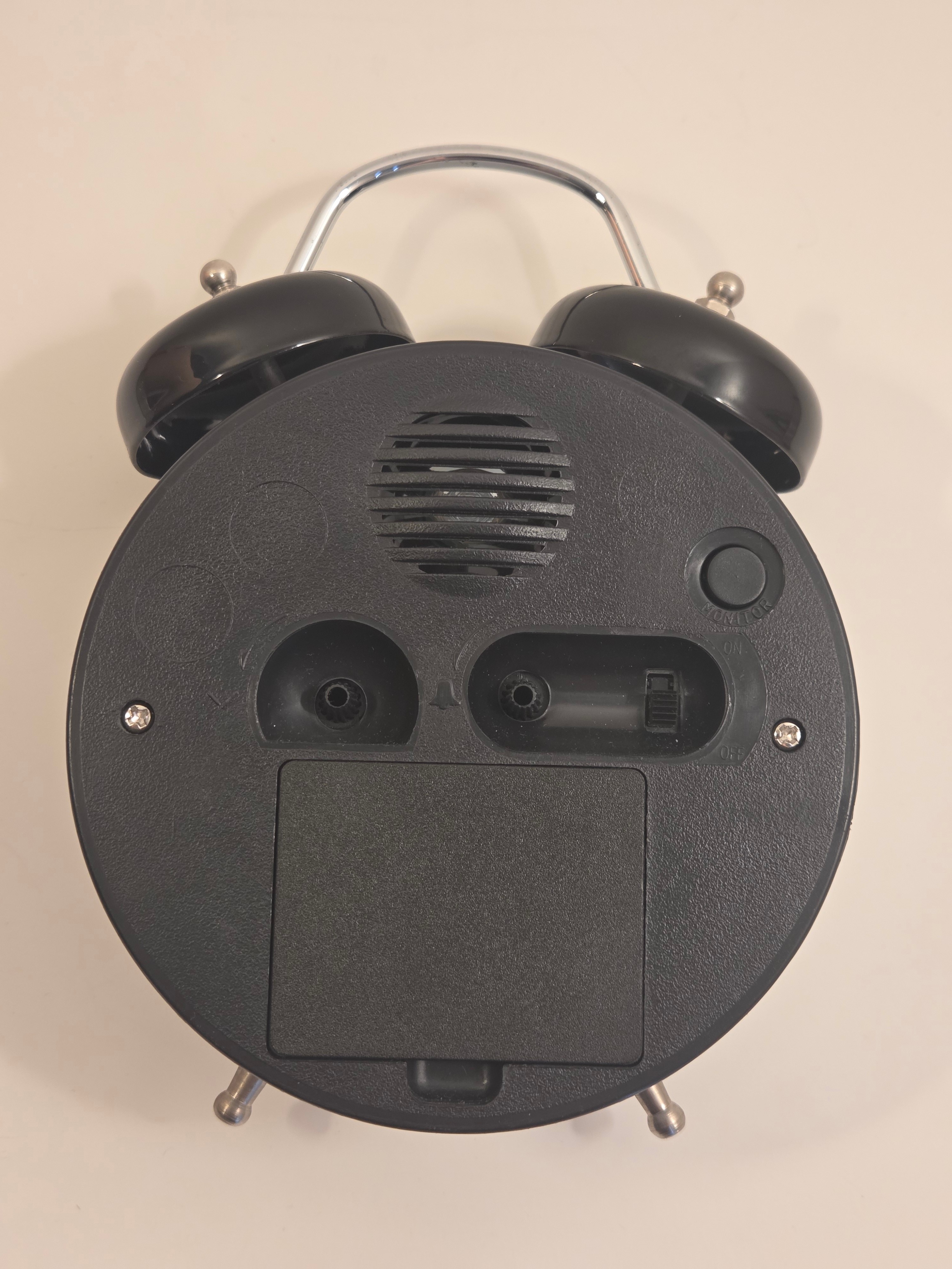 – Alarm ON/OFF switch on the back, separate knobs for time and alarm set