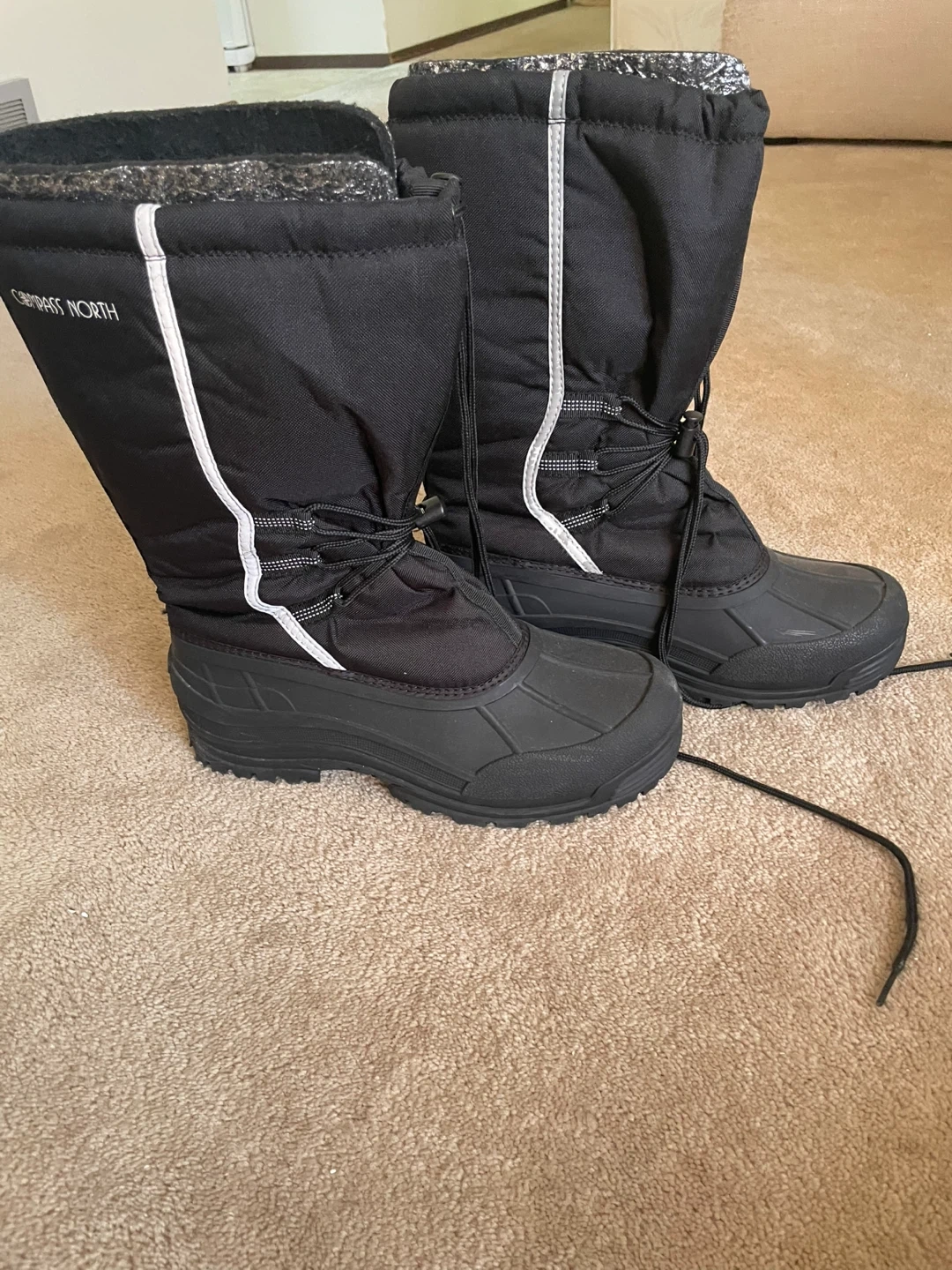 Selling a pair of Compass North winter boots in black. They look like they're in great condition and ready to keep your feet warm this winter!
