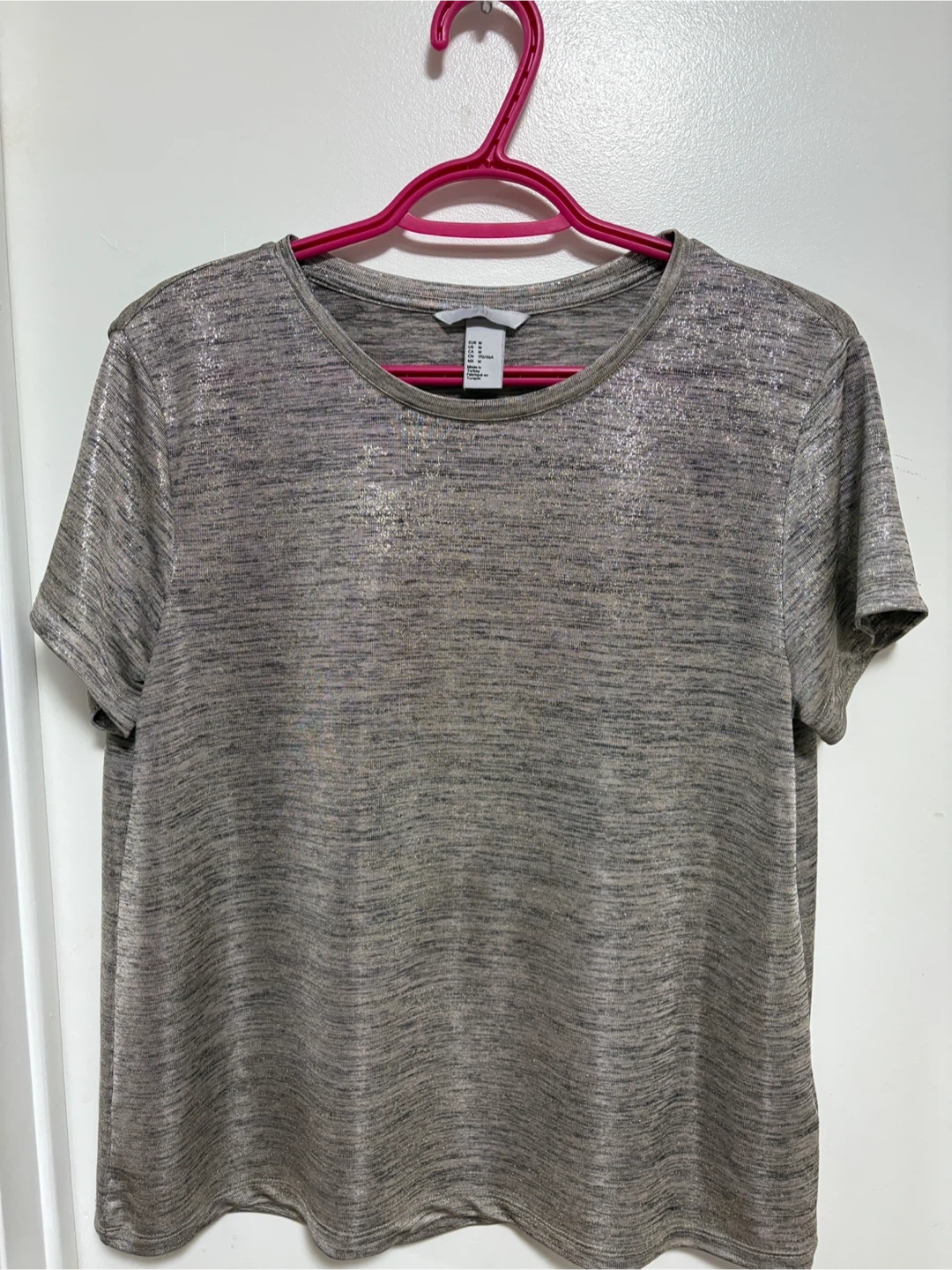 Casual dressy ladies tops all size medium in excellent condition black shimmer, Old Navy, silver shimmer H&M black with studs H&M. $5.00 ea, or all 3- $12.00