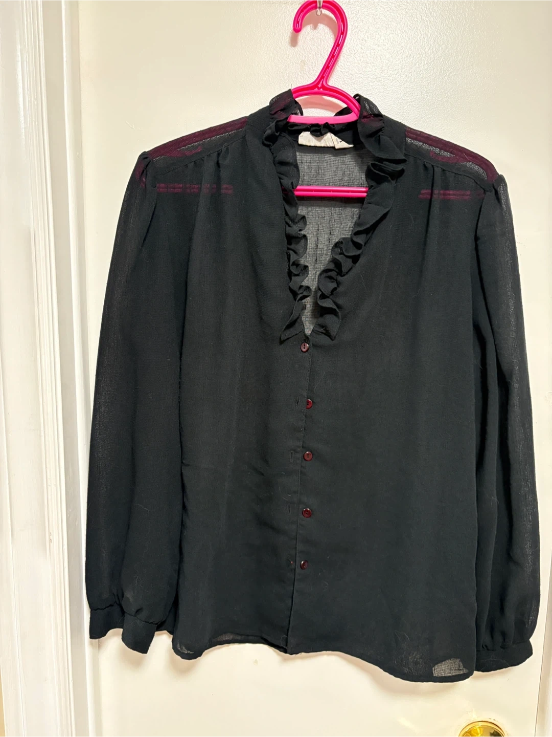 Two ladies dressy tops one navy blue Joe, fresh size large but fits more like a medium, the other black sheer long sleeve Chartres size medium. Both in excellent condition. $6.00ea or both $10.00