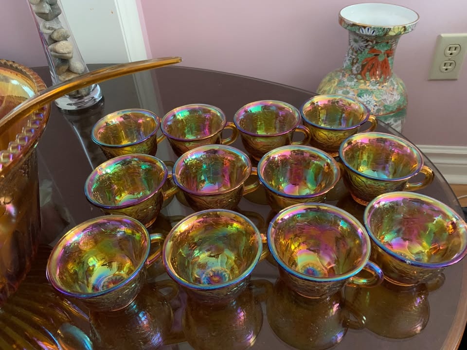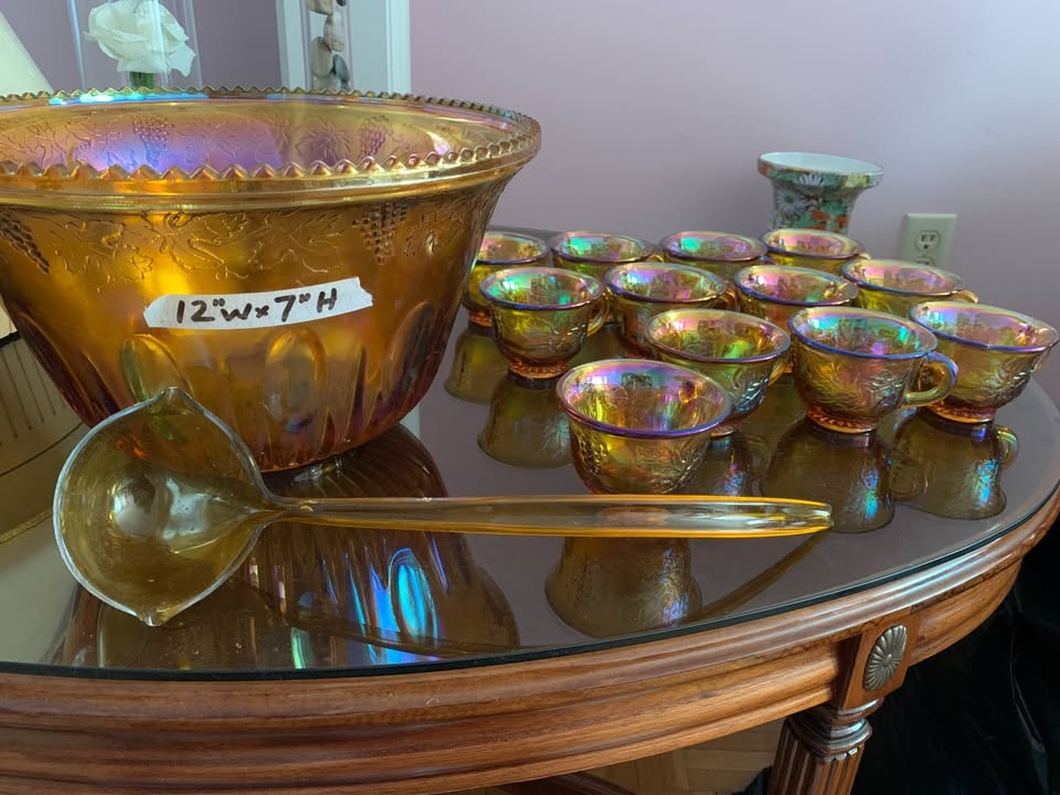 1 / 61 / 6Buy & SellCarnival Glass Punch Bowl SetCarnival Glass Punch Bowl Set$60Vintage Carnival Glass Punch Bowl Set. Includes: large Bowl, ladle, 12 cups. PU: Winston Churchill Blvd and Burnhamthorpe Rd WWHERE TO MEETCheck LocationView MapSELLERverifiedJenErin Mills18610 reviews0 chats·0 favorites·14 viewsSEND CHAT TO SELLERHi Jen! I’m interested in your listing.Hi Jen! I’m interested in your listing.Get the Karrot app to chatSign In to chat