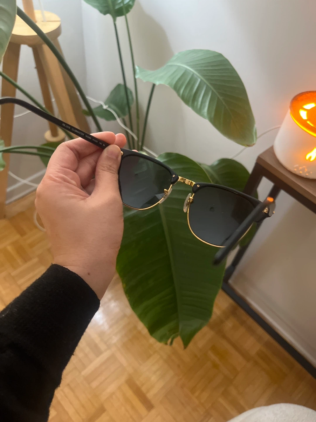 Selling a pair of Ray-Ban Clubmaster sunglasses in black and gold! They're in great condition and ready for a new owner. These sunglasses are a timeless classic and perfect for adding a touch of style to any outfit