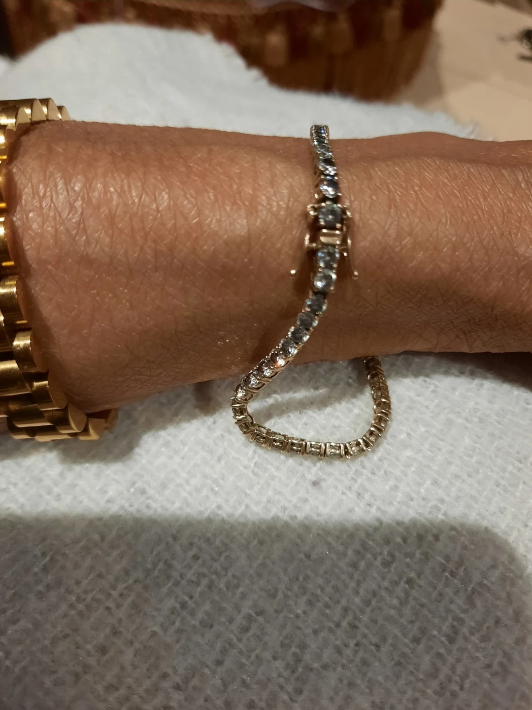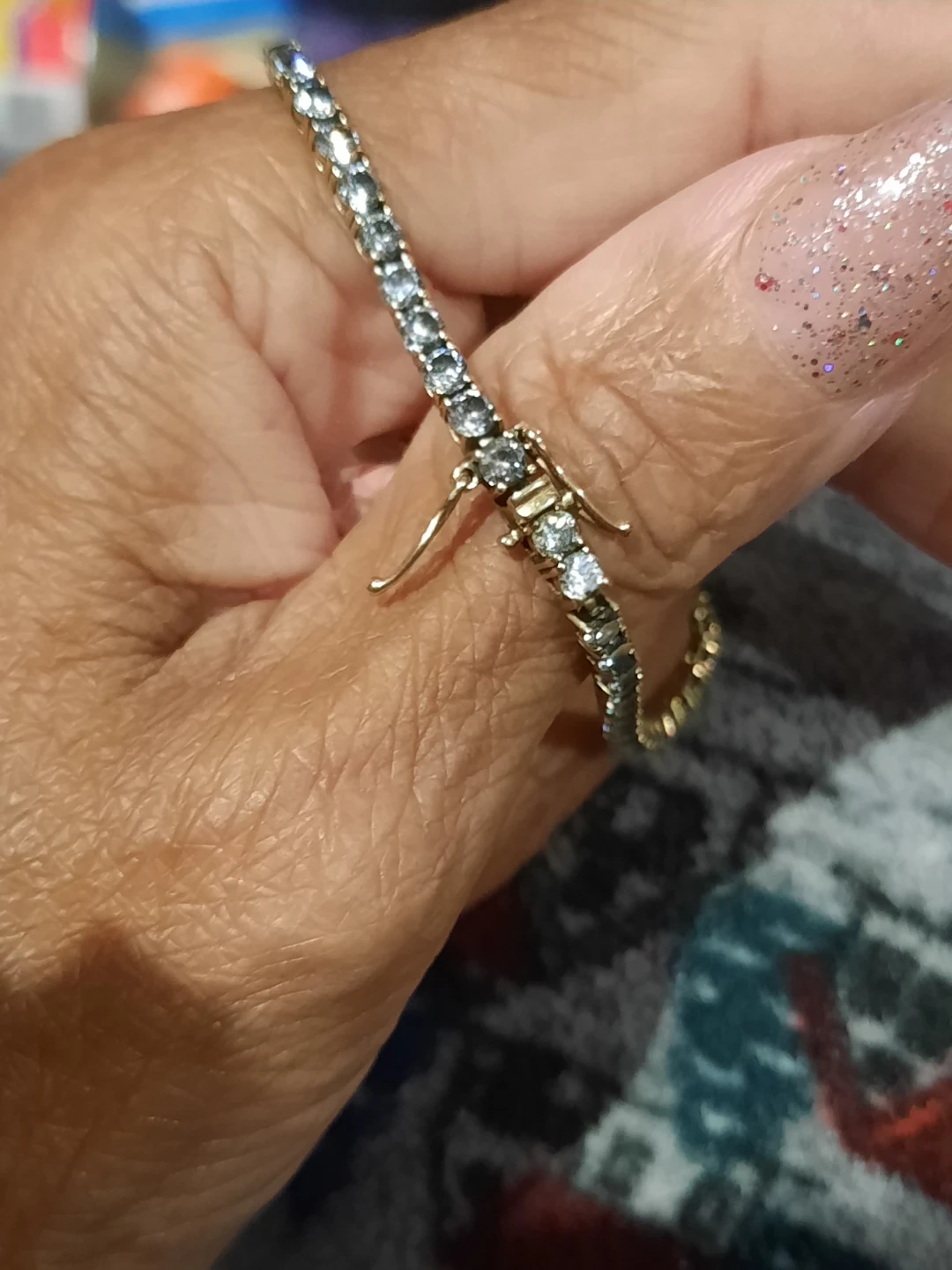 Authentic genuine solid 10k yellow gold CZ tennis bracelet 7.5" double locking ๐ clasp