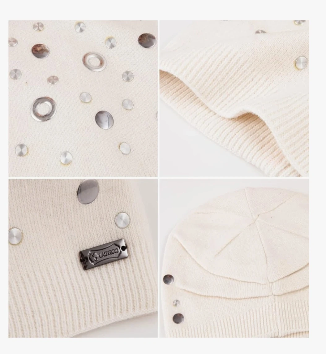 Cozy cream-coloured Ladybro beanie, perfect for keeping warm on chilly days! Features a stylish design with decorative embellishments. A great addition to your winter wardrobe!