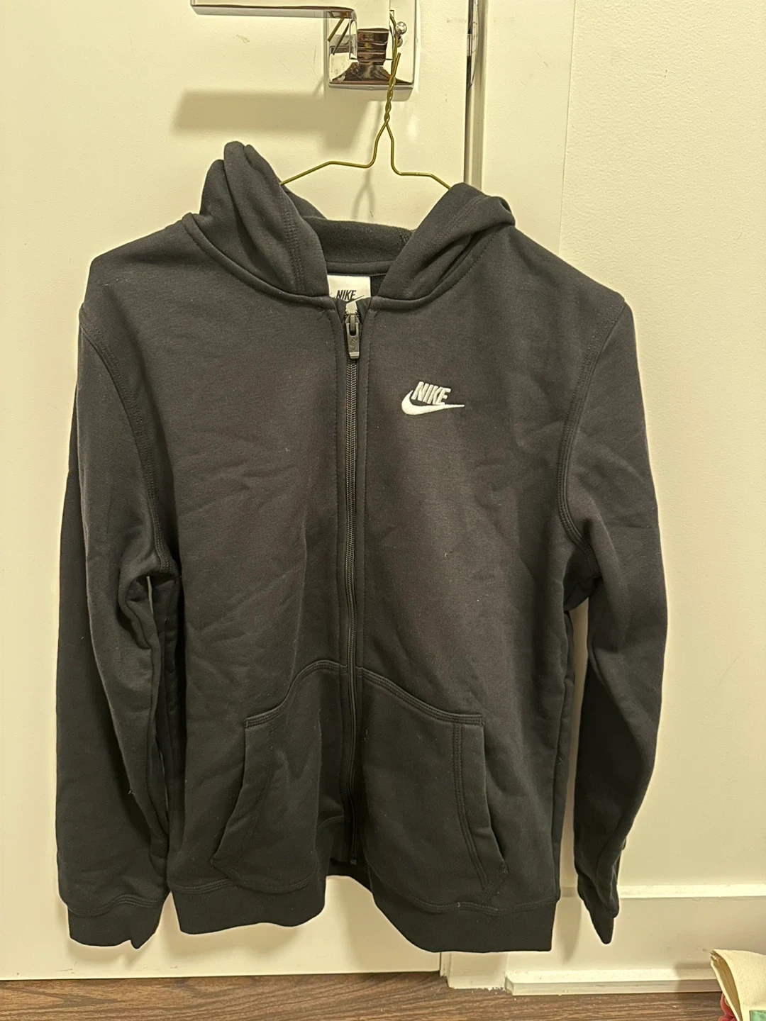 Selling a Nike kids' full zip hoodie in black, size XL. It's in great condition and ready for a new owner! Actually women can fits too!