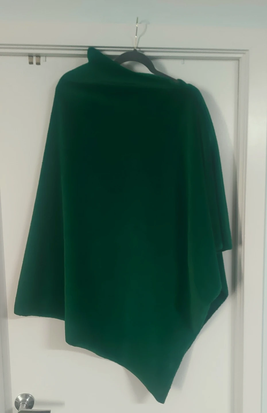 Here's a stylish fur green poncho that's perfect for adding a touch of warmth and elegance to any outfit! It's in great condition and ready to be your new favourite accessory